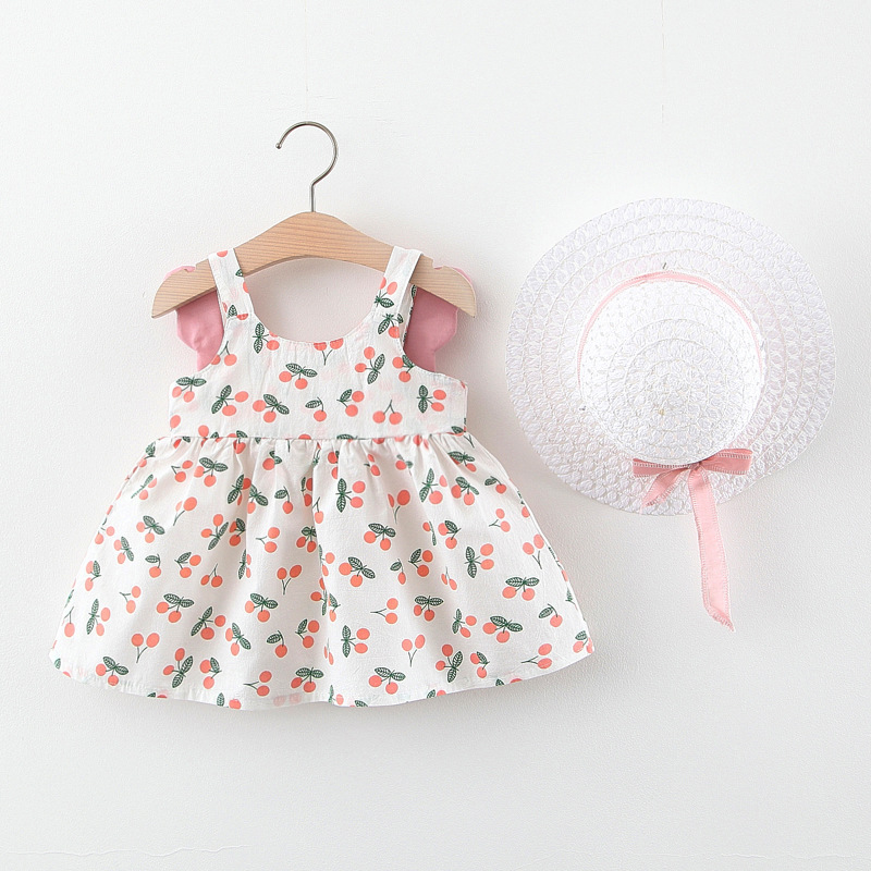 【BG032】日系滿版櫻桃無袖澎澎洋裝[送遮陽帽](3色)
