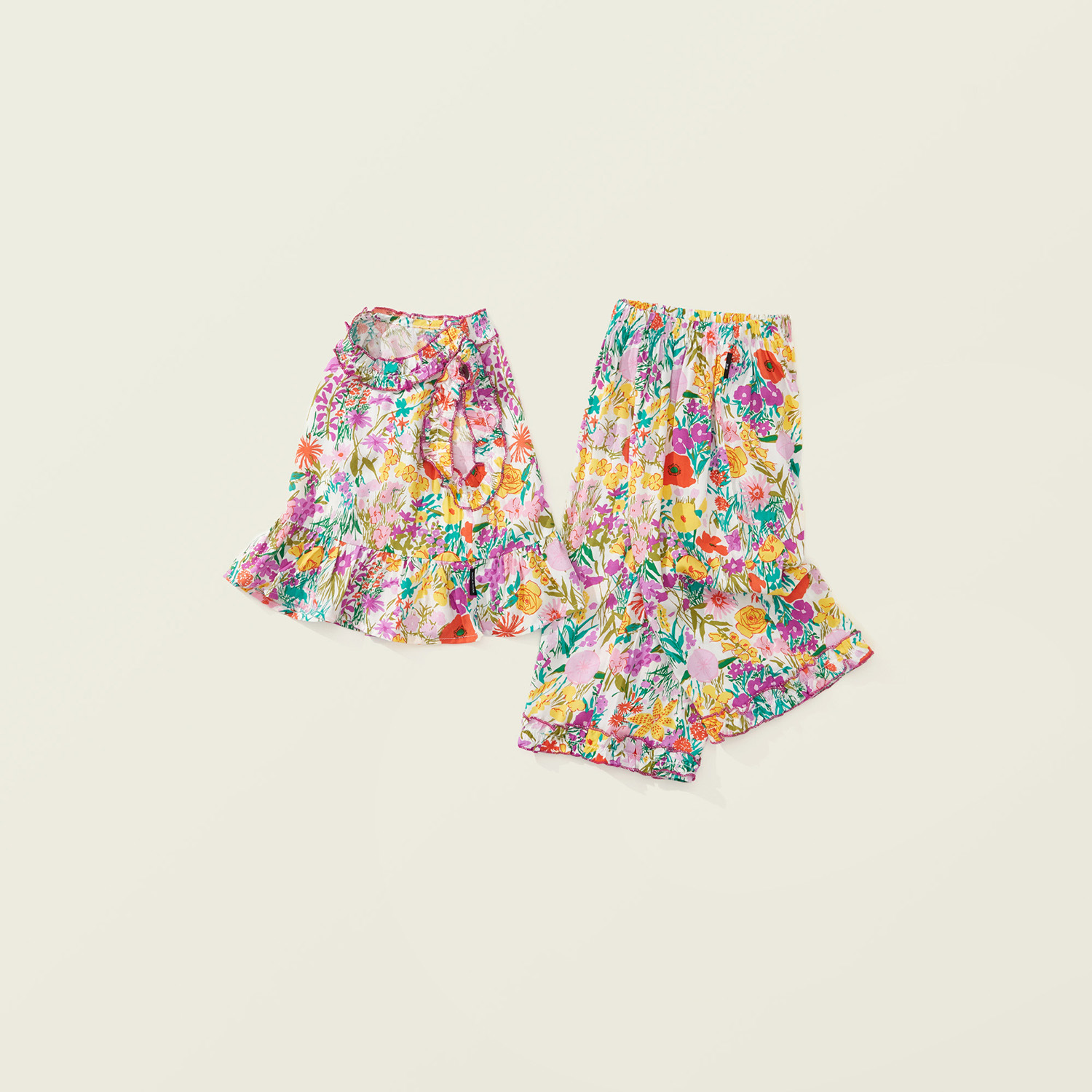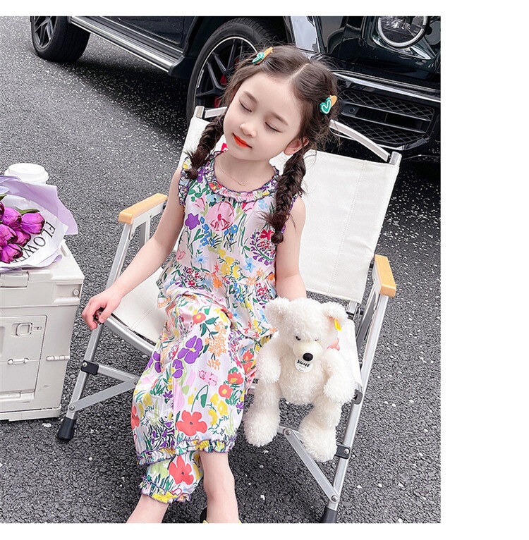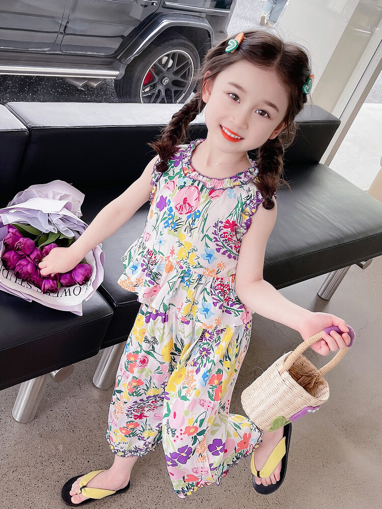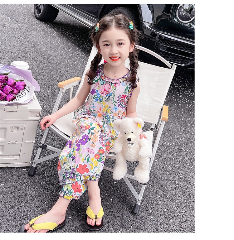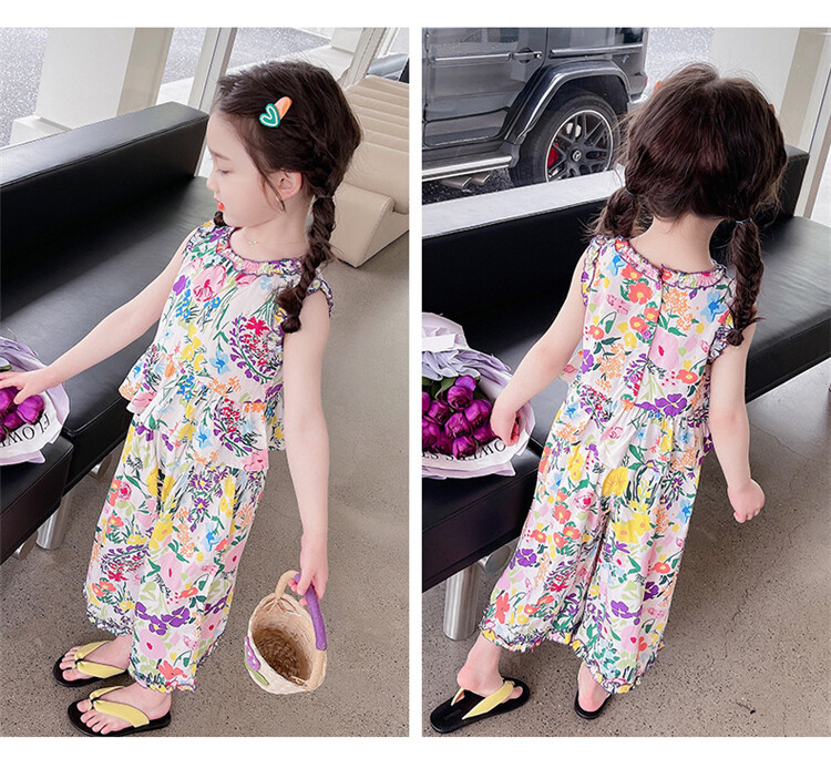 【BG040】日系繽紛彩色花兩件式無袖長褲套裝(1色)