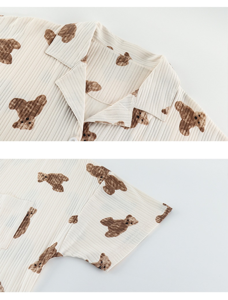【H355】日系滿版毛絨熊舒適成套睡衣褲(情侶款)(短袖/短褲)