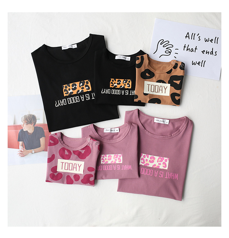 【F004】日系潮流豹紋全家福親子短袖上衣(2色)