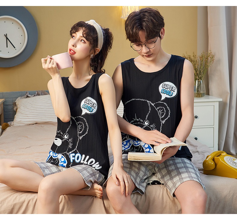 【H401】日系大玩偶熊舒適成套睡衣褲(情侶款)(無袖/短褲)