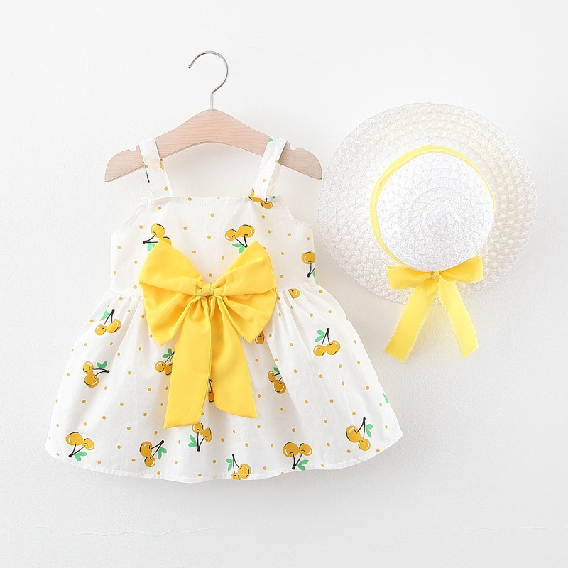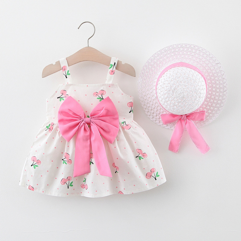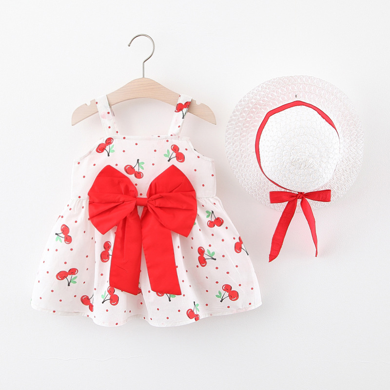 【BG100】日系櫻桃點點蝴蝶結無袖澎澎洋裝(送遮陽帽)(3色)
