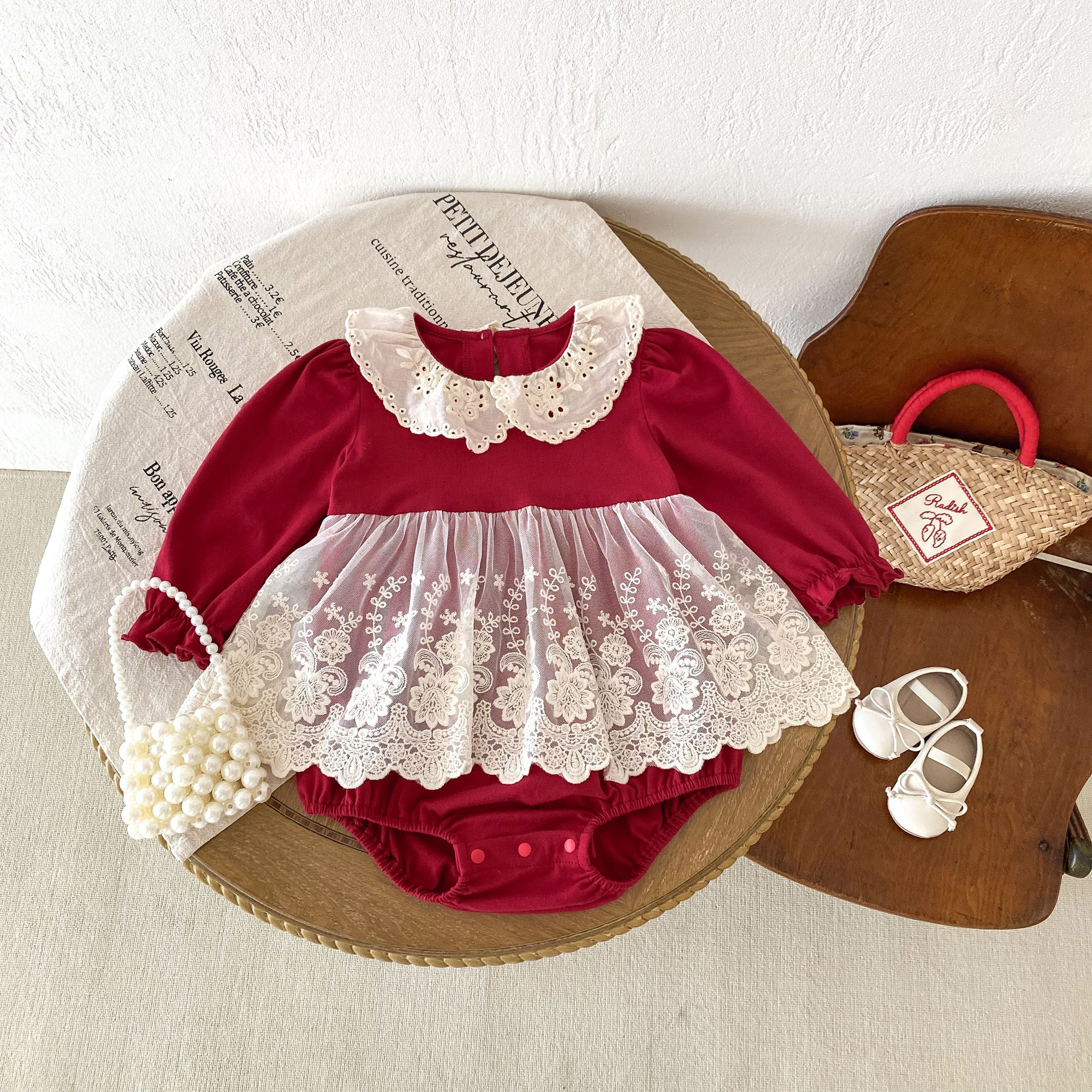 【BA066】韓版蕾絲花長袖包屁裙(1色)