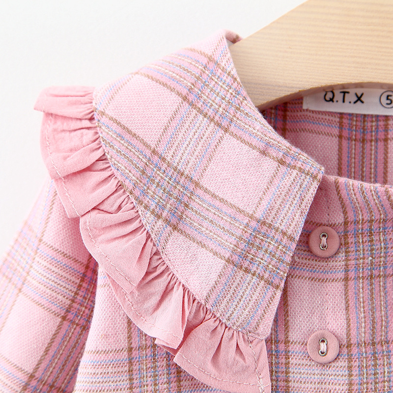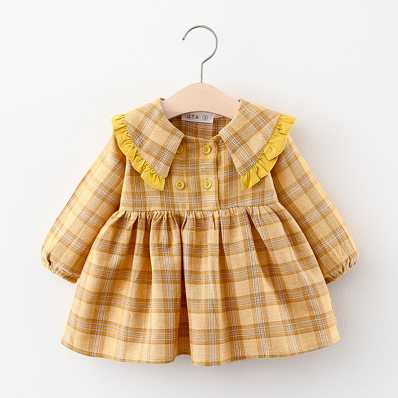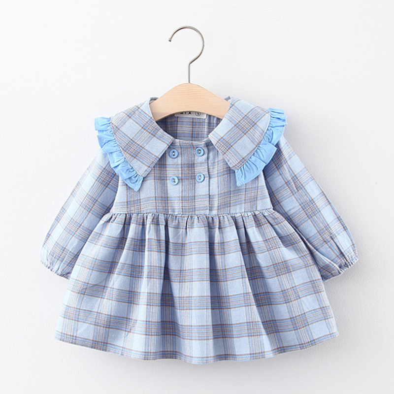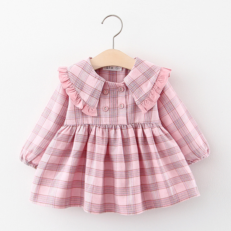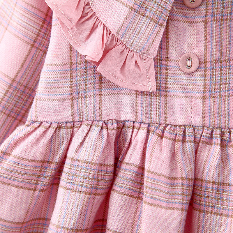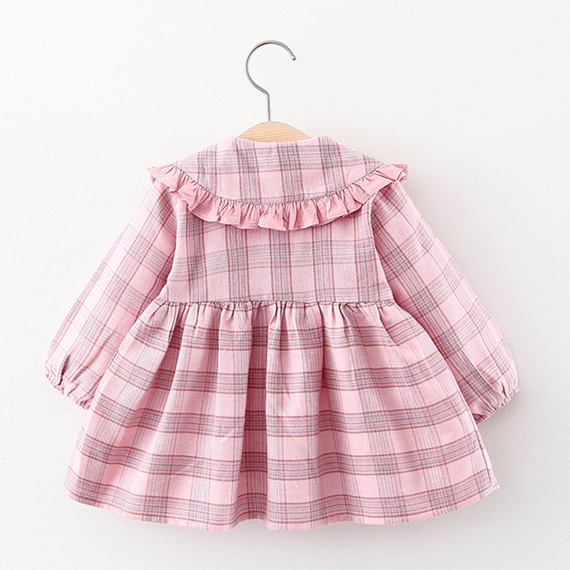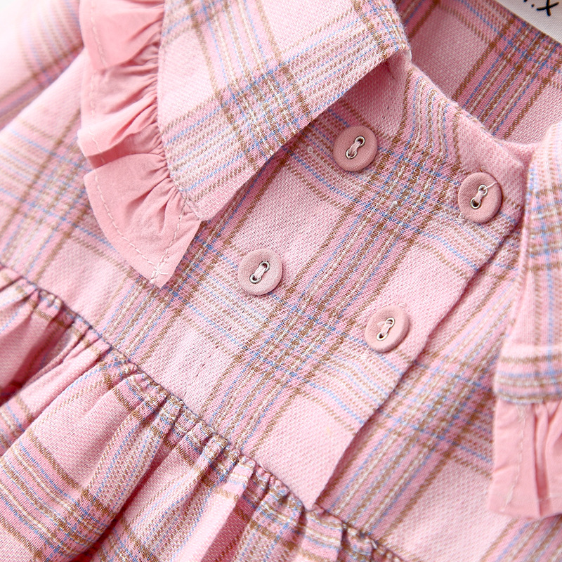 【BG170】日系大翻領格紋長袖澎澎洋裝(3色)
