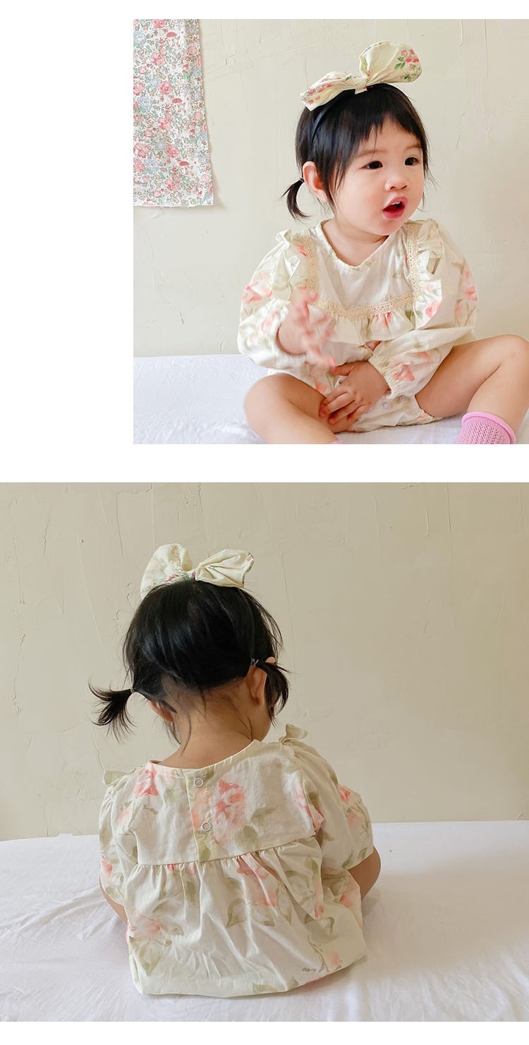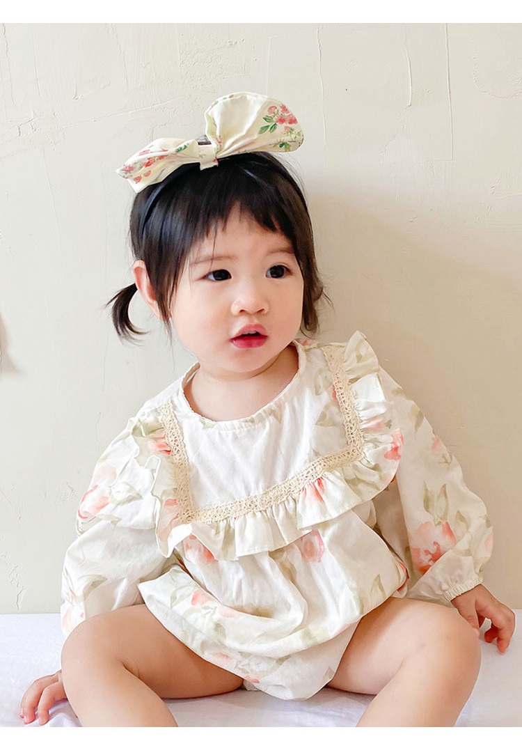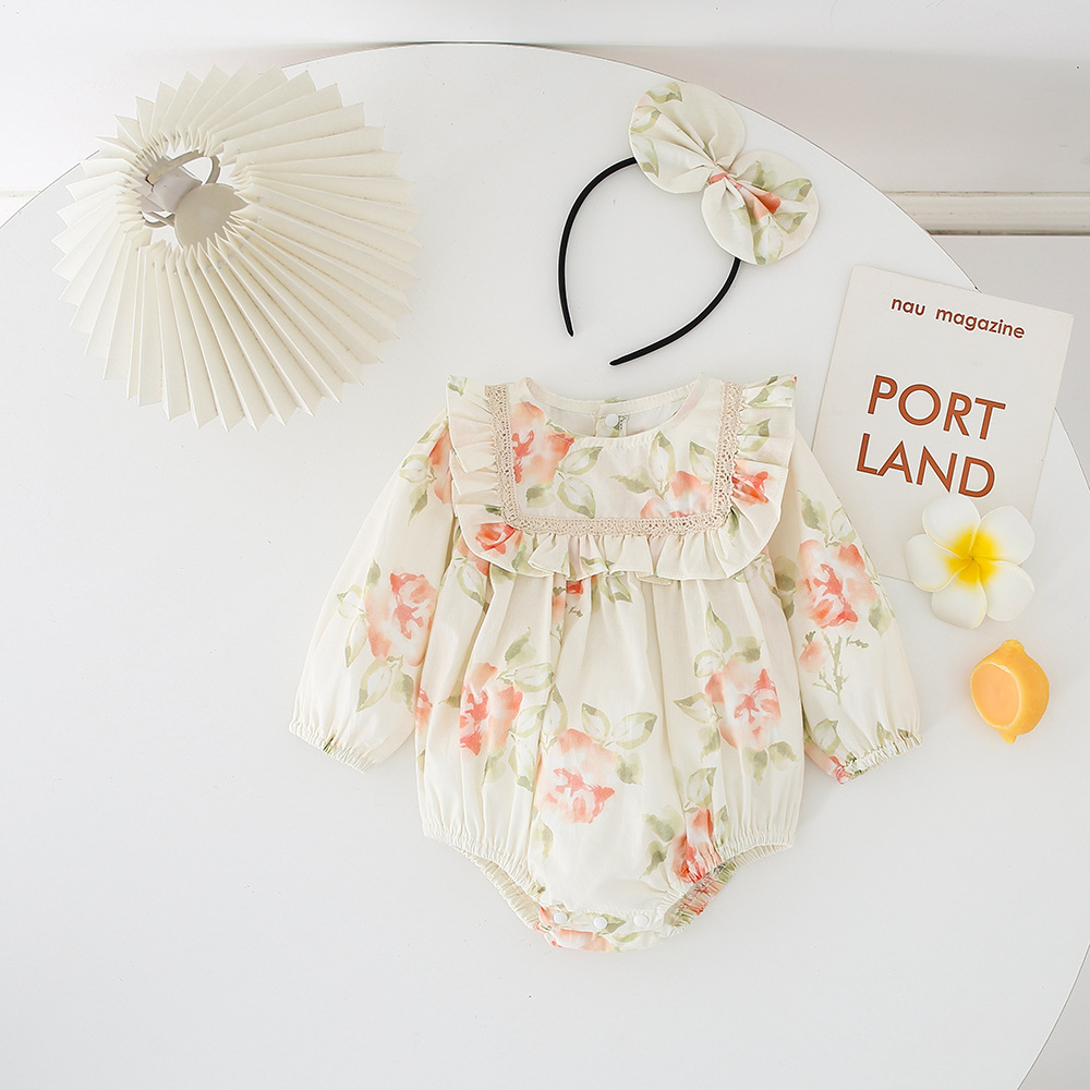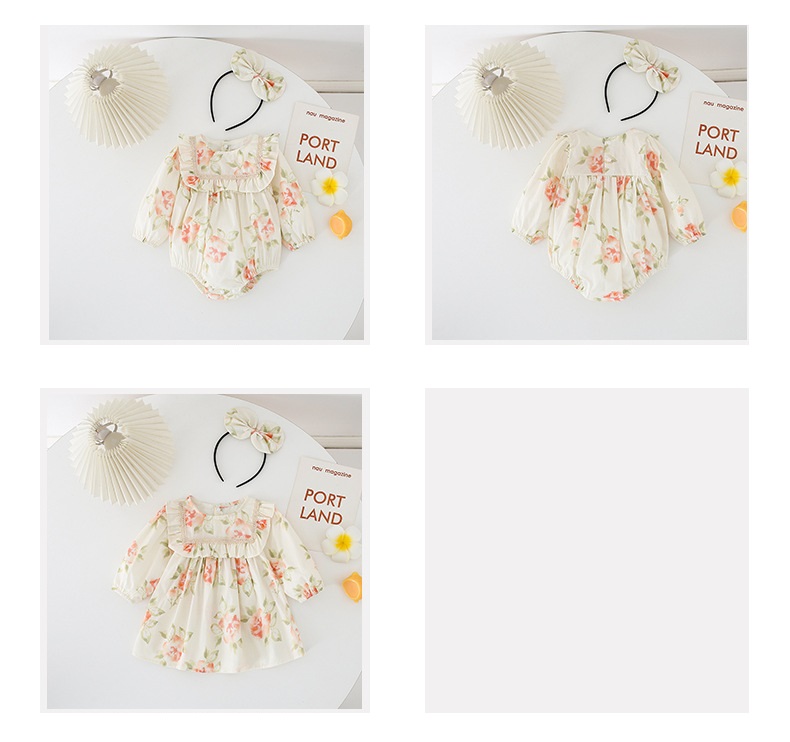 【BS012】韓版方領水彩玫瑰花長袖包屁衣小洋裝(送髮箍)(1色)