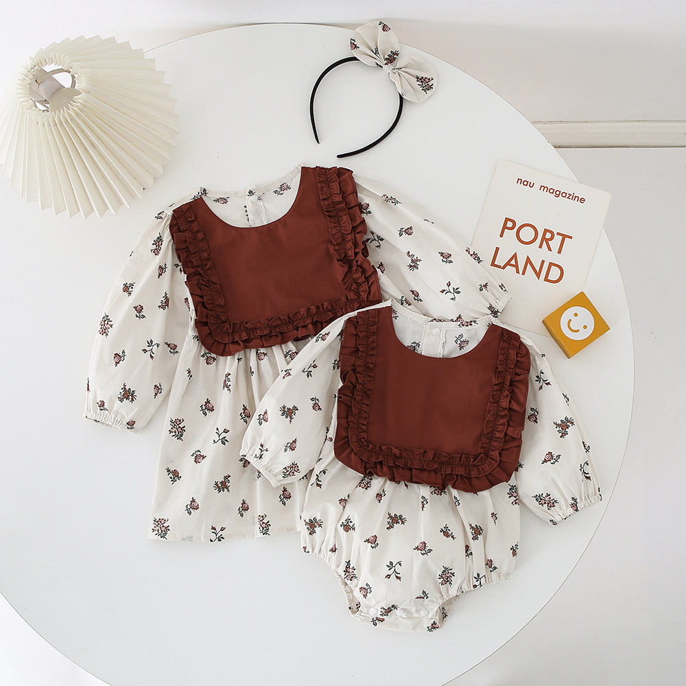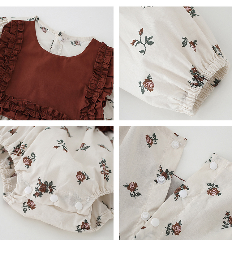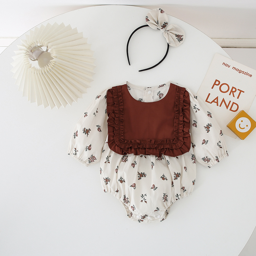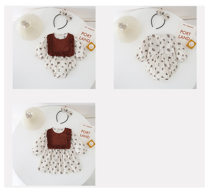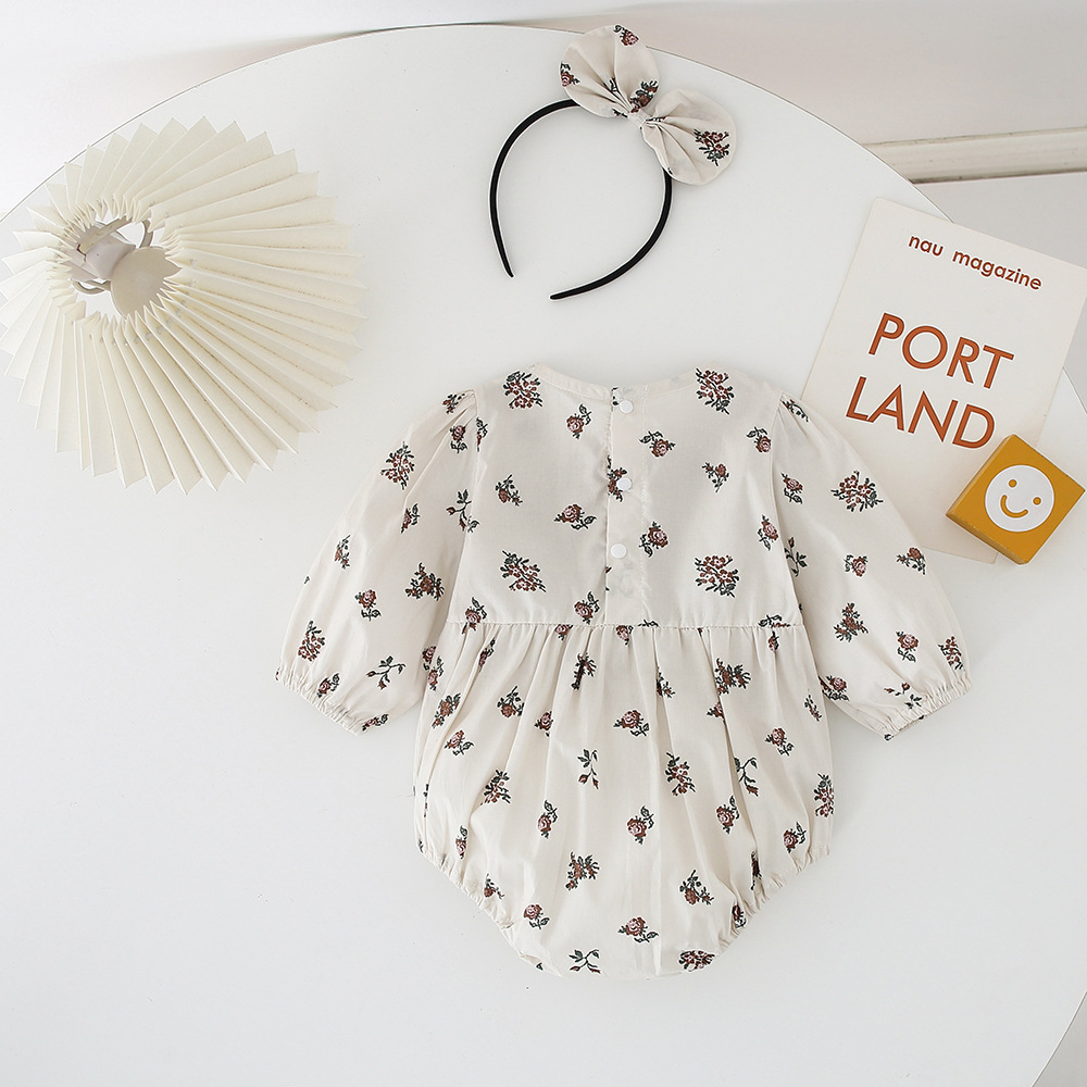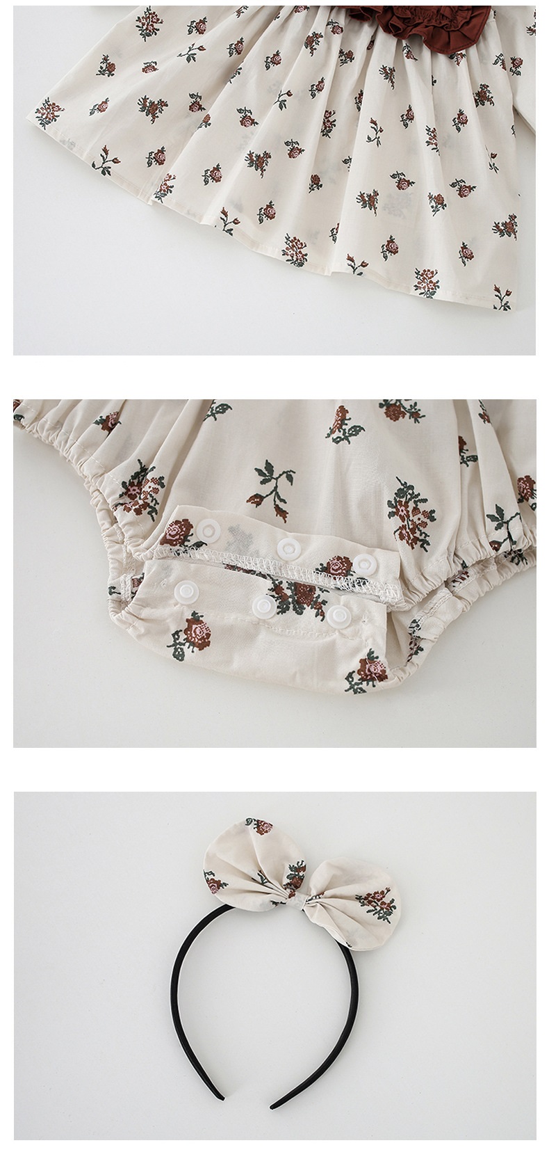 【BS022】韓版田園風小碎花方領長袖包屁衣小洋裝(送髮箍)(1色)