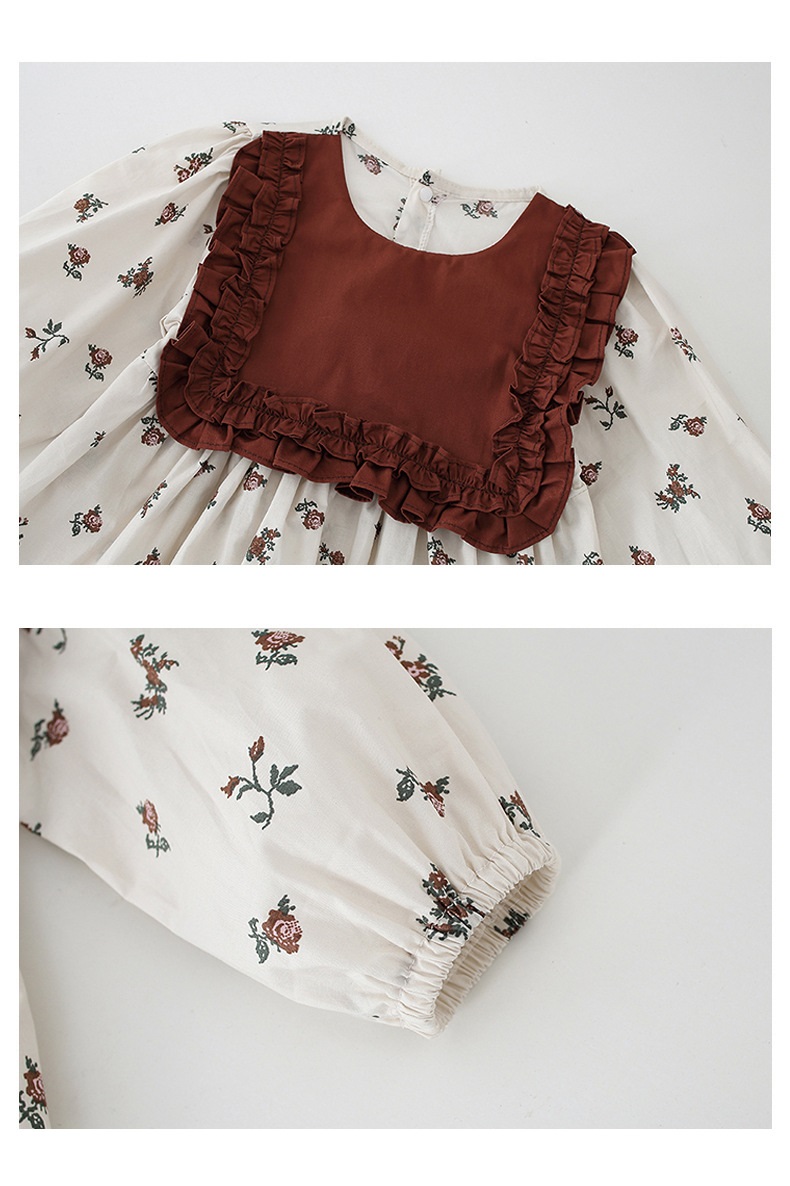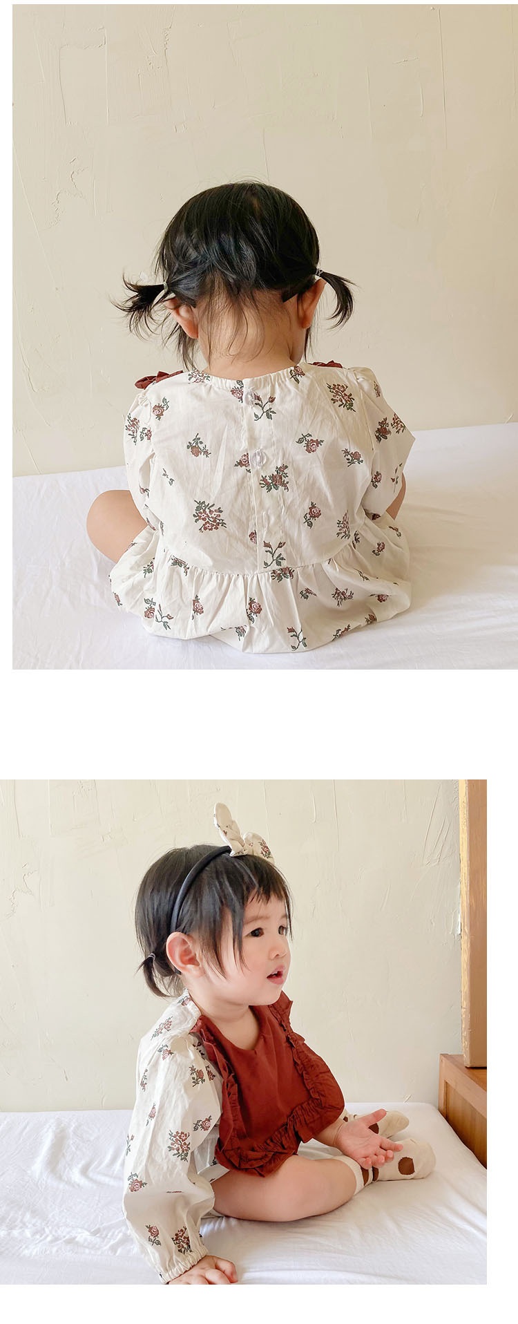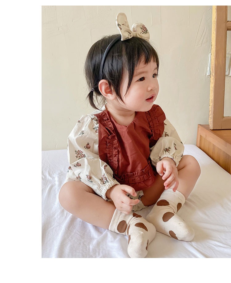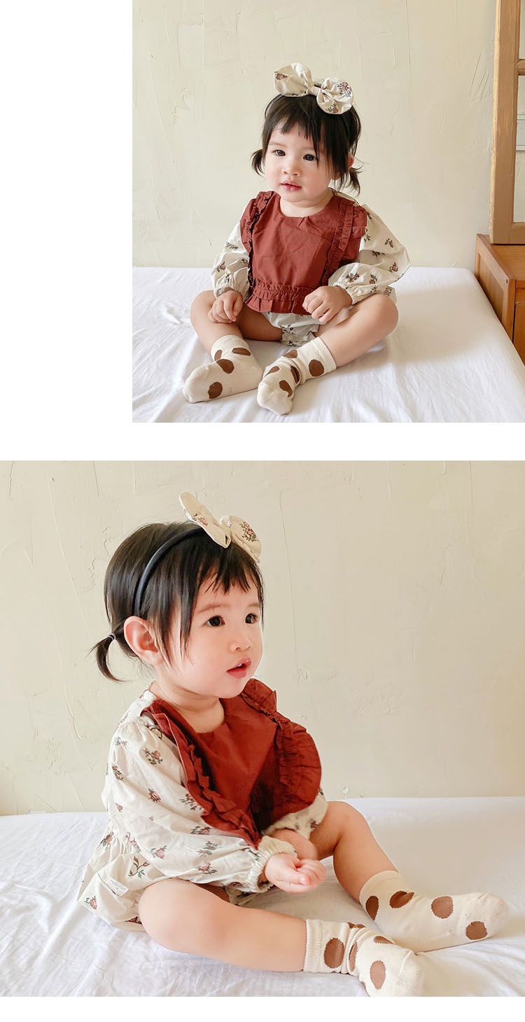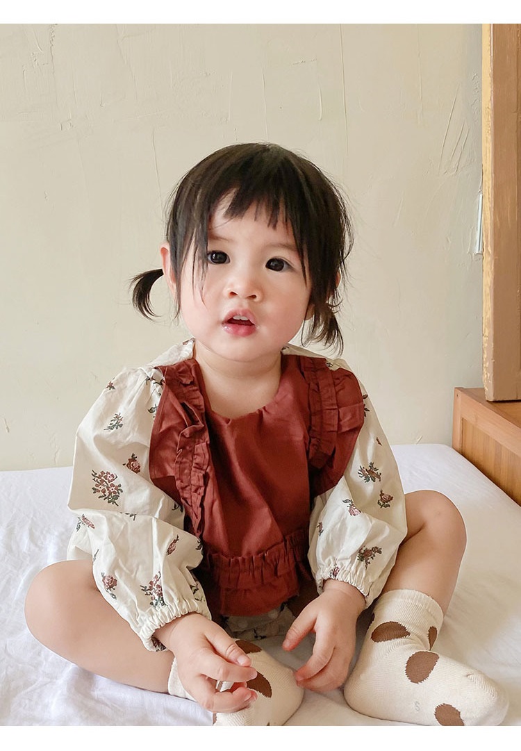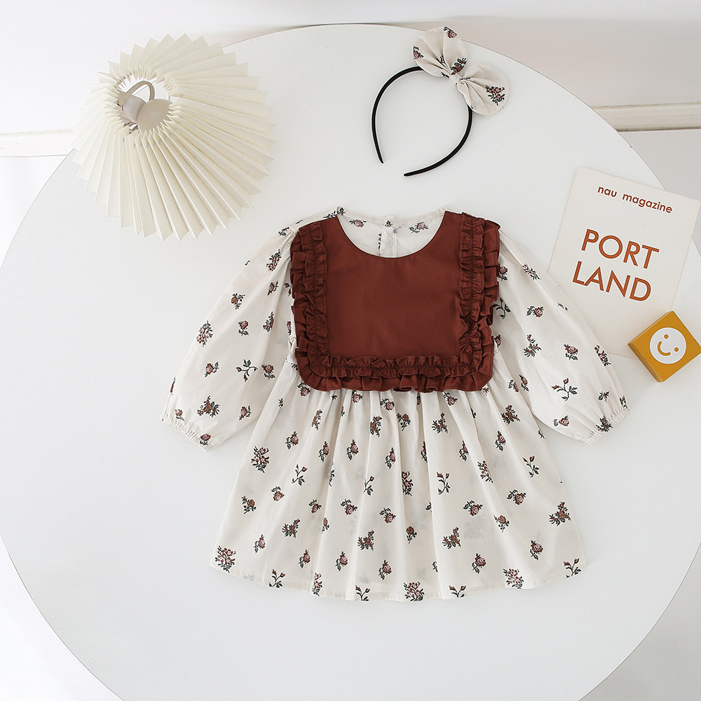 【BS022】韓版田園風小碎花方領長袖包屁衣小洋裝(送髮箍)(1色)