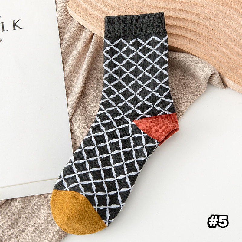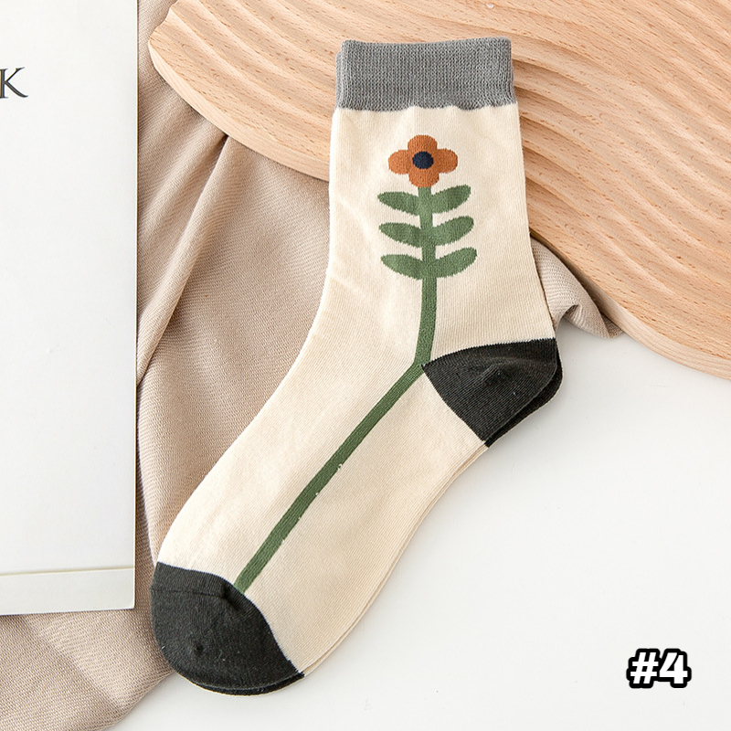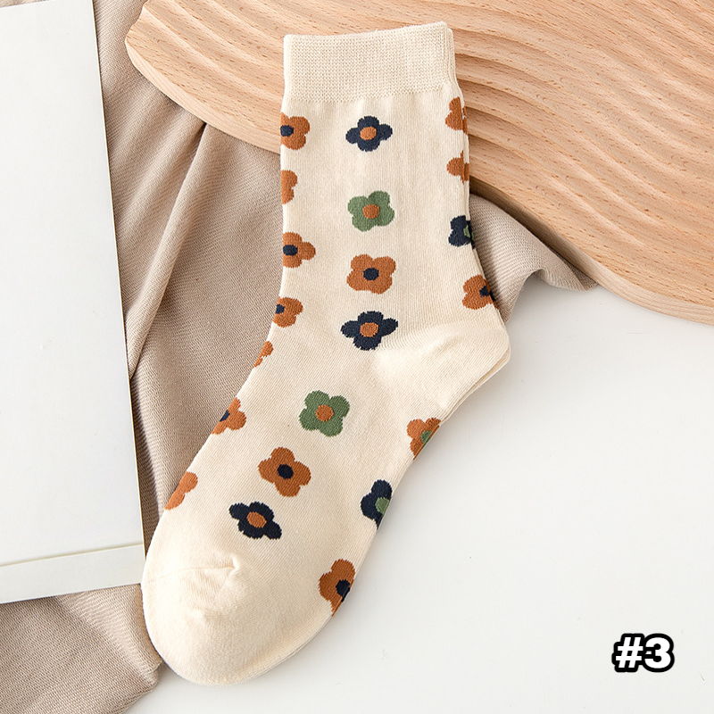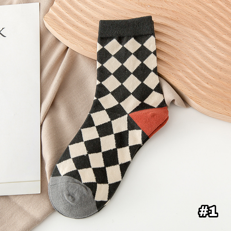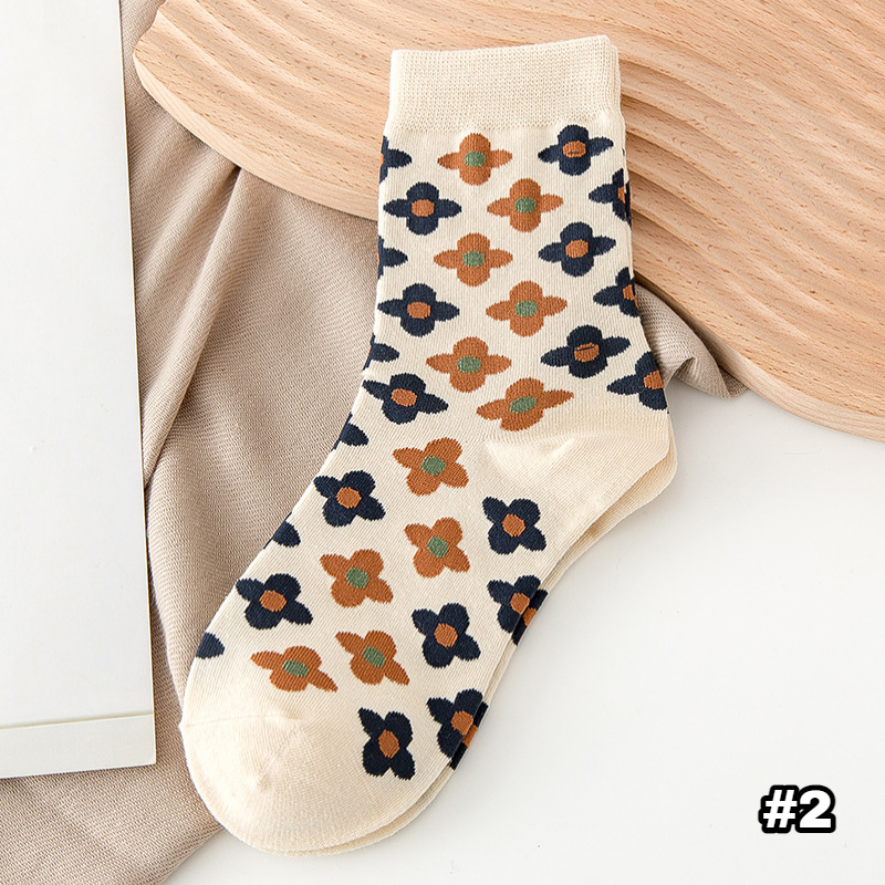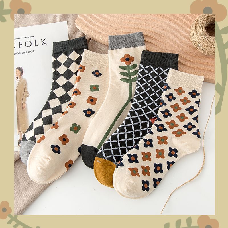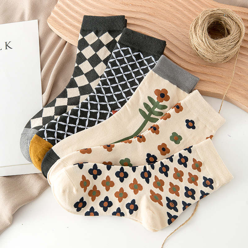 【S254】日系復古菱形小花中筒襪(5色)