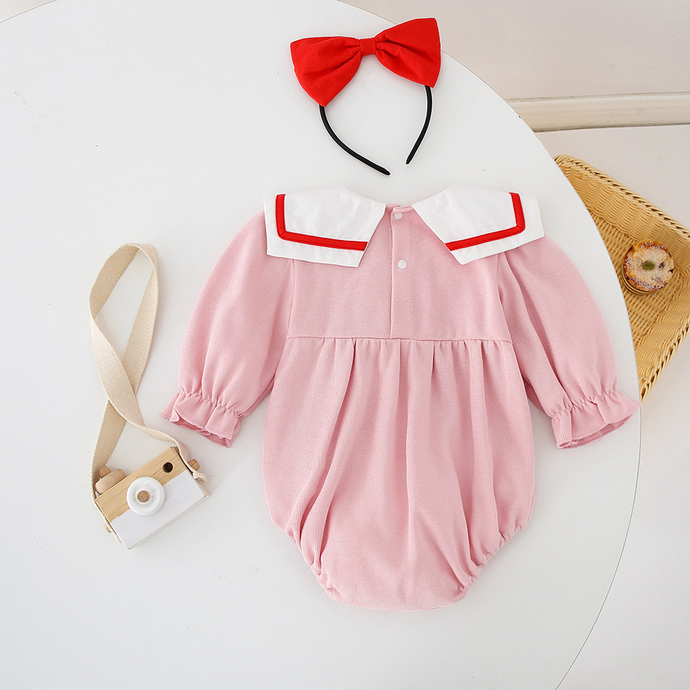 【BS029】韓版小花蝴蝶結水手服長袖包屁衣小洋裝(送髮箍)(1色)