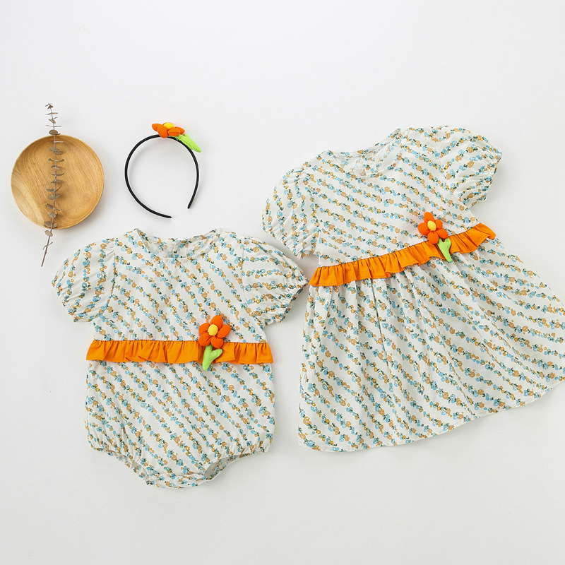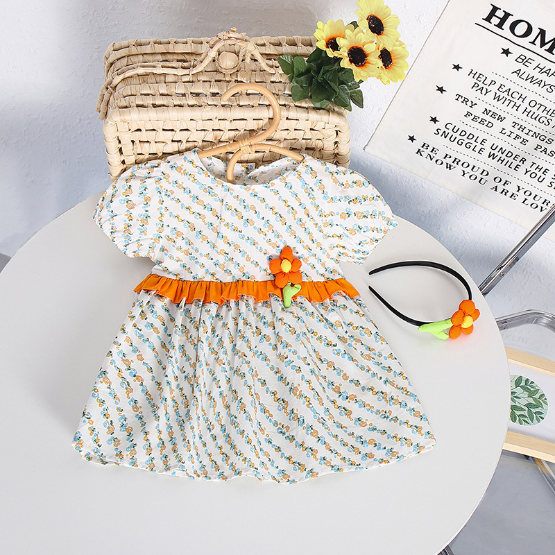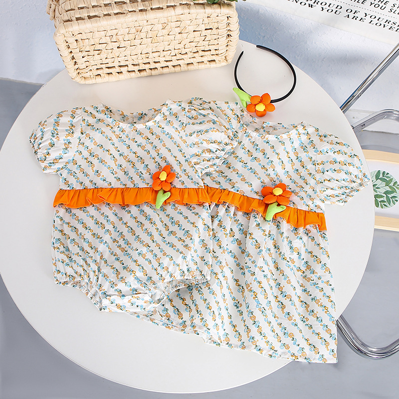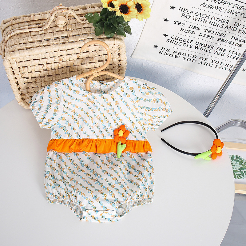 【BS036】韓版立體花朵短袖包屁衣小洋裝(送髮箍)(1色)