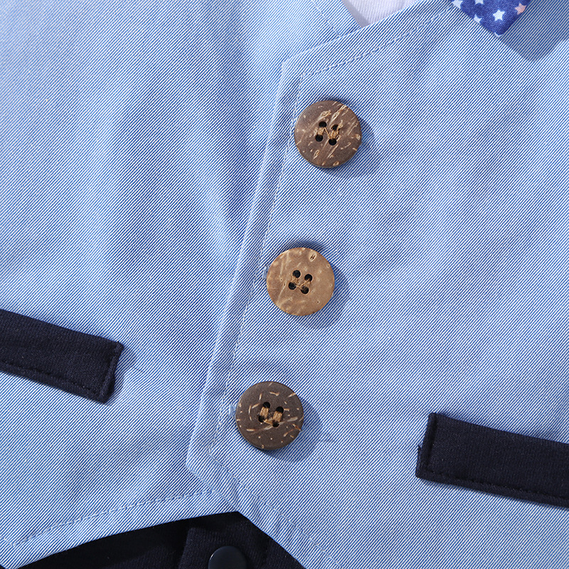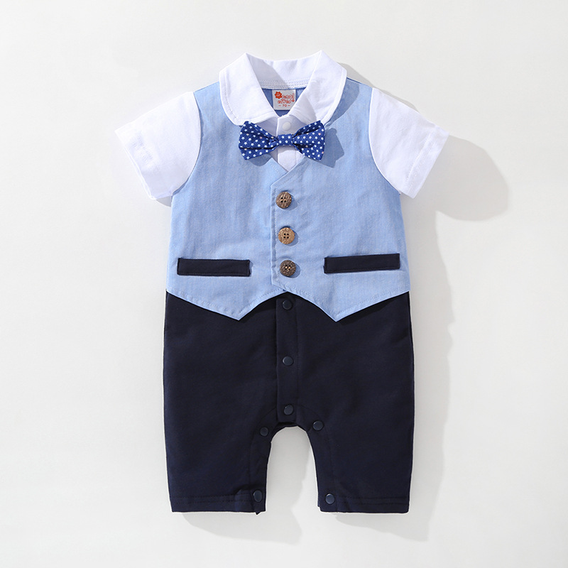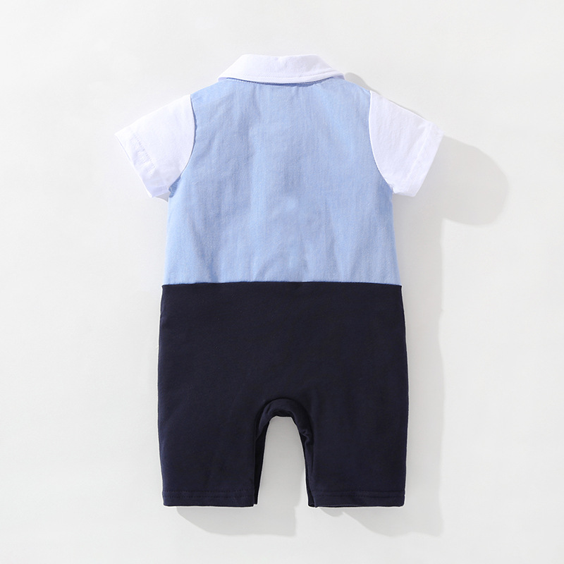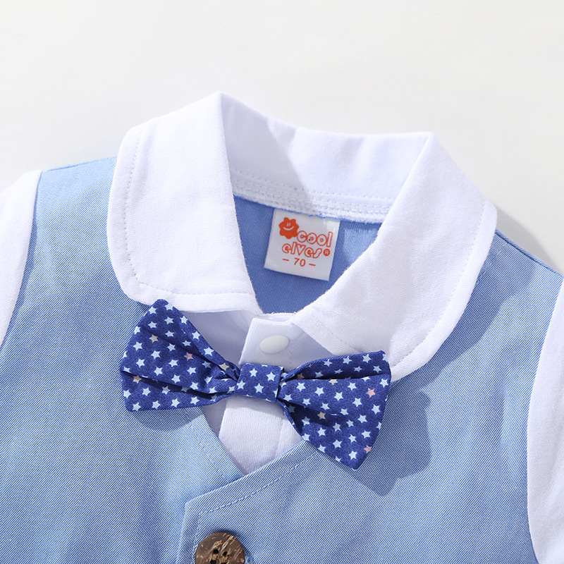 【BB205】英倫風星星領結小背心假兩件短袖連身衣(1色)