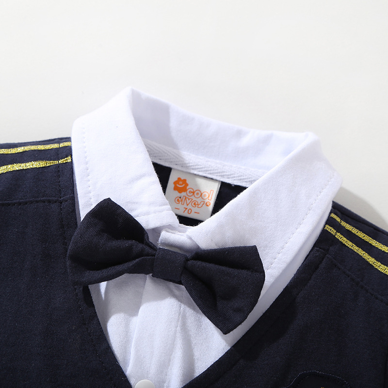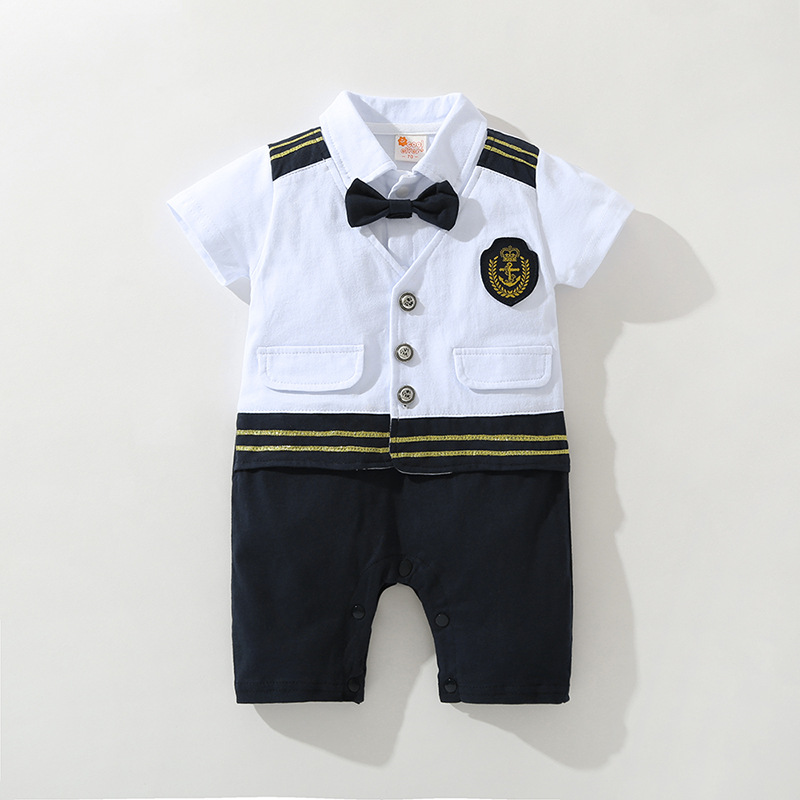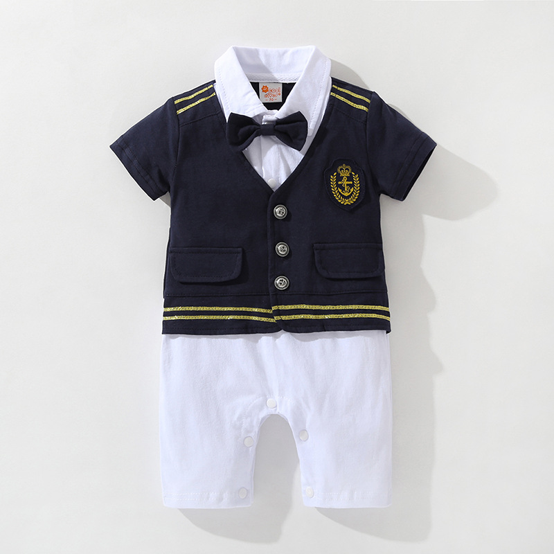 【BB212】英倫風海軍勳章假兩件短袖連身衣(2色)