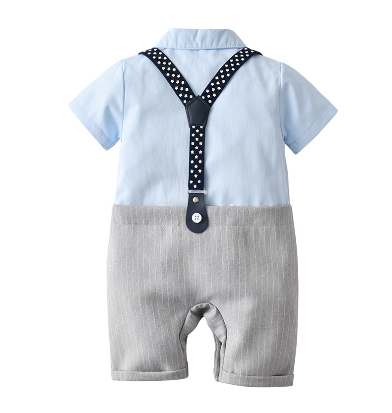 【BB216】英倫風小領結星星吊帶假兩件短袖連身衣(1色)