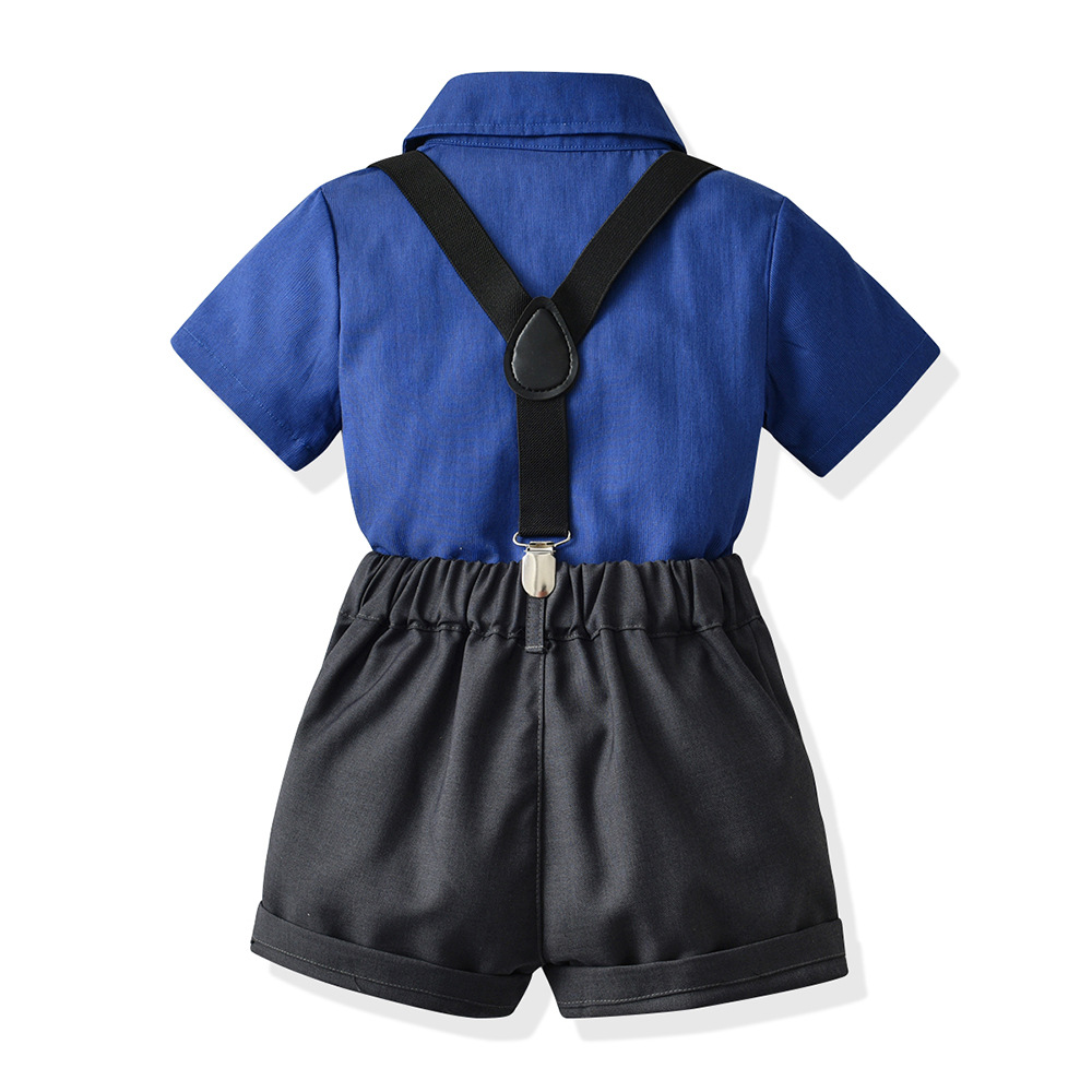 【BB106】韓版領帶襯衫兩件式吊帶短袖短褲套裝(1色)