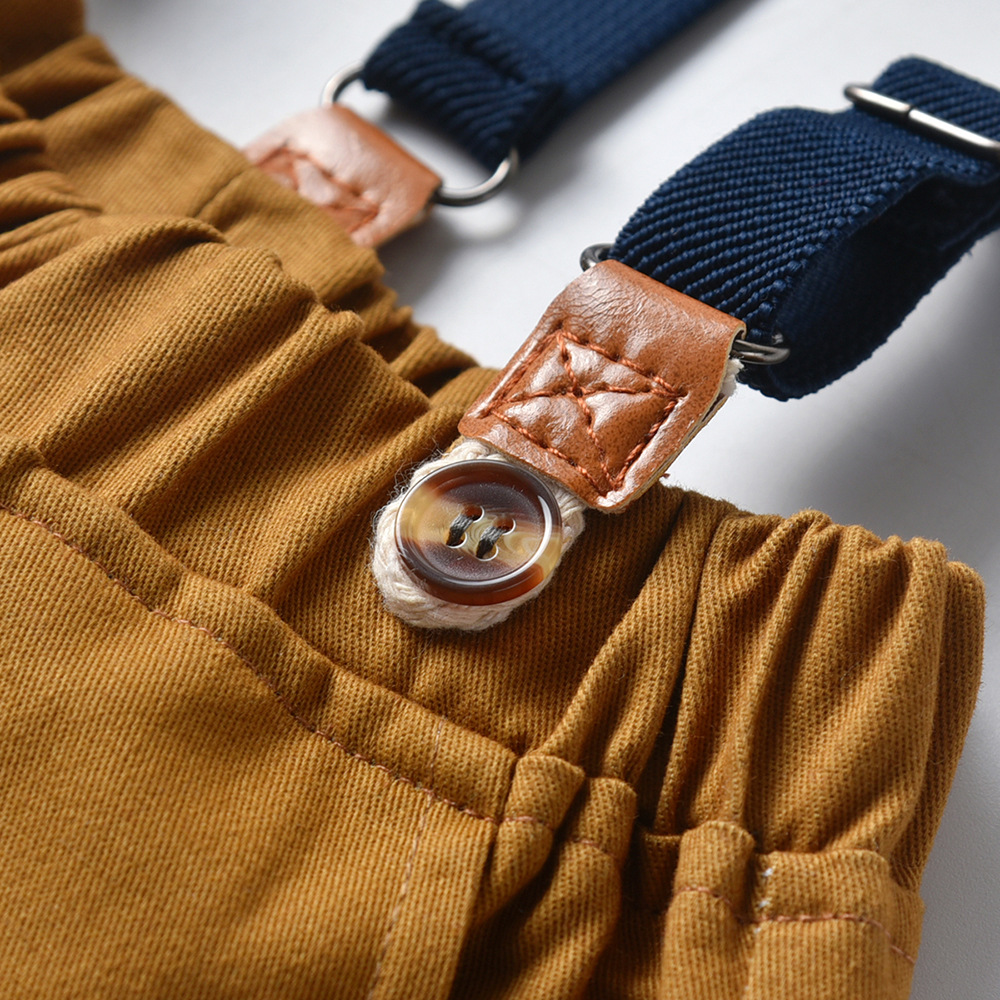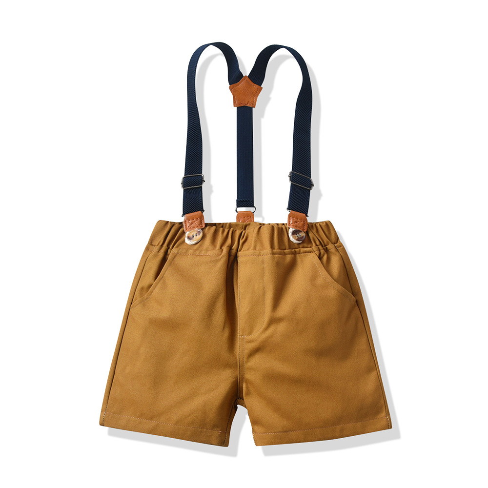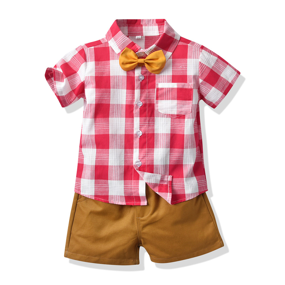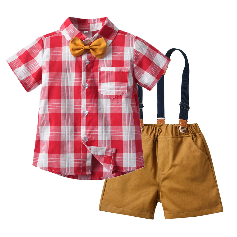 【BB113】韓版小領結紅格紋兩件式吊帶短袖短褲套裝(1色)