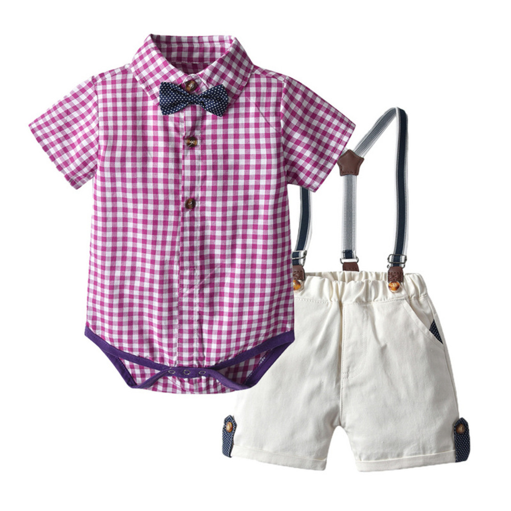 【BB115】韓版小領結格紋兩件式短袖包屁套裝(1色)