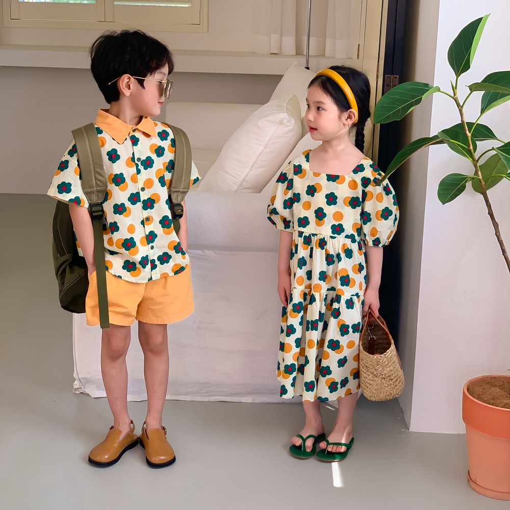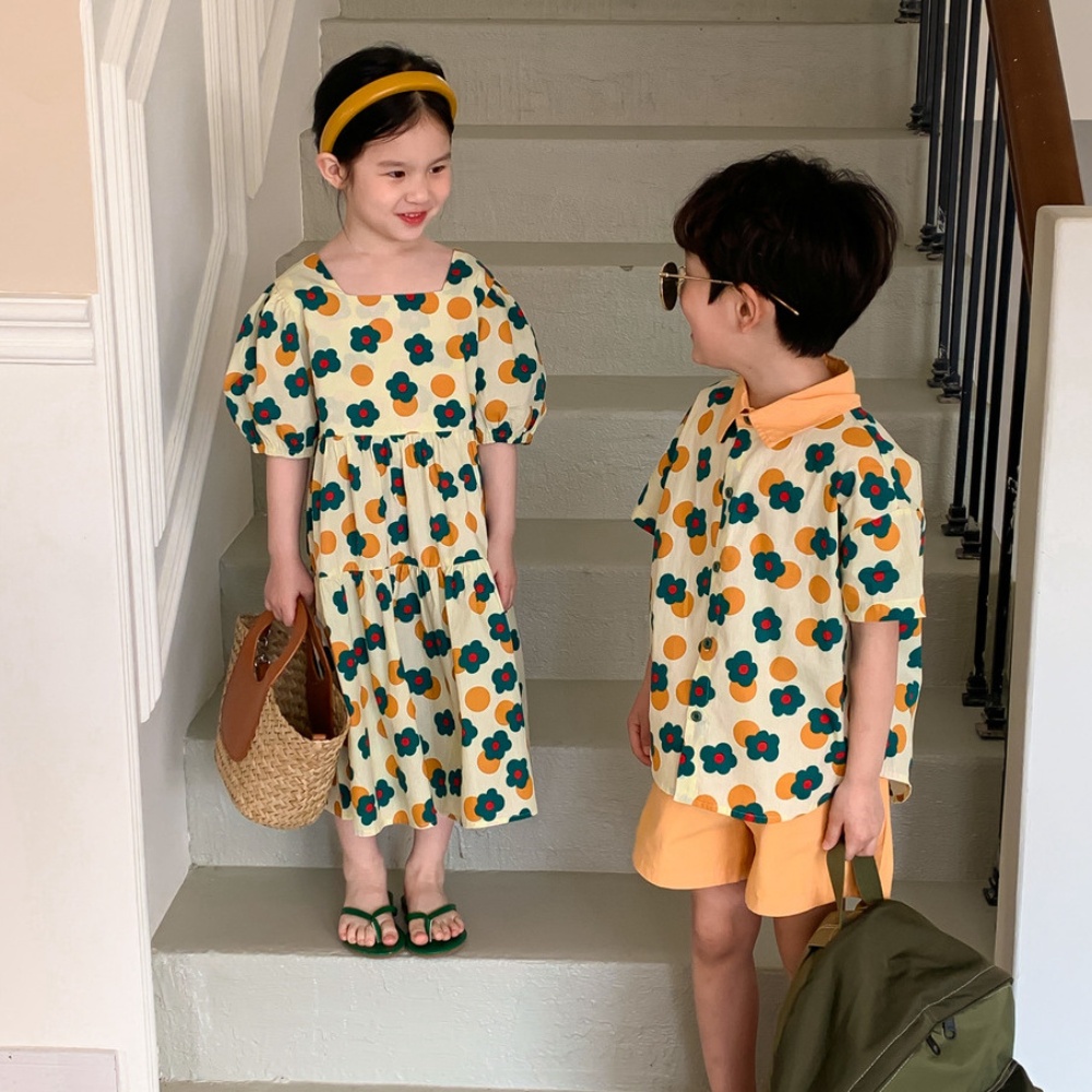(缺貨)【BS052】日系復古小花點點兄妹套裝洋裝(1色)