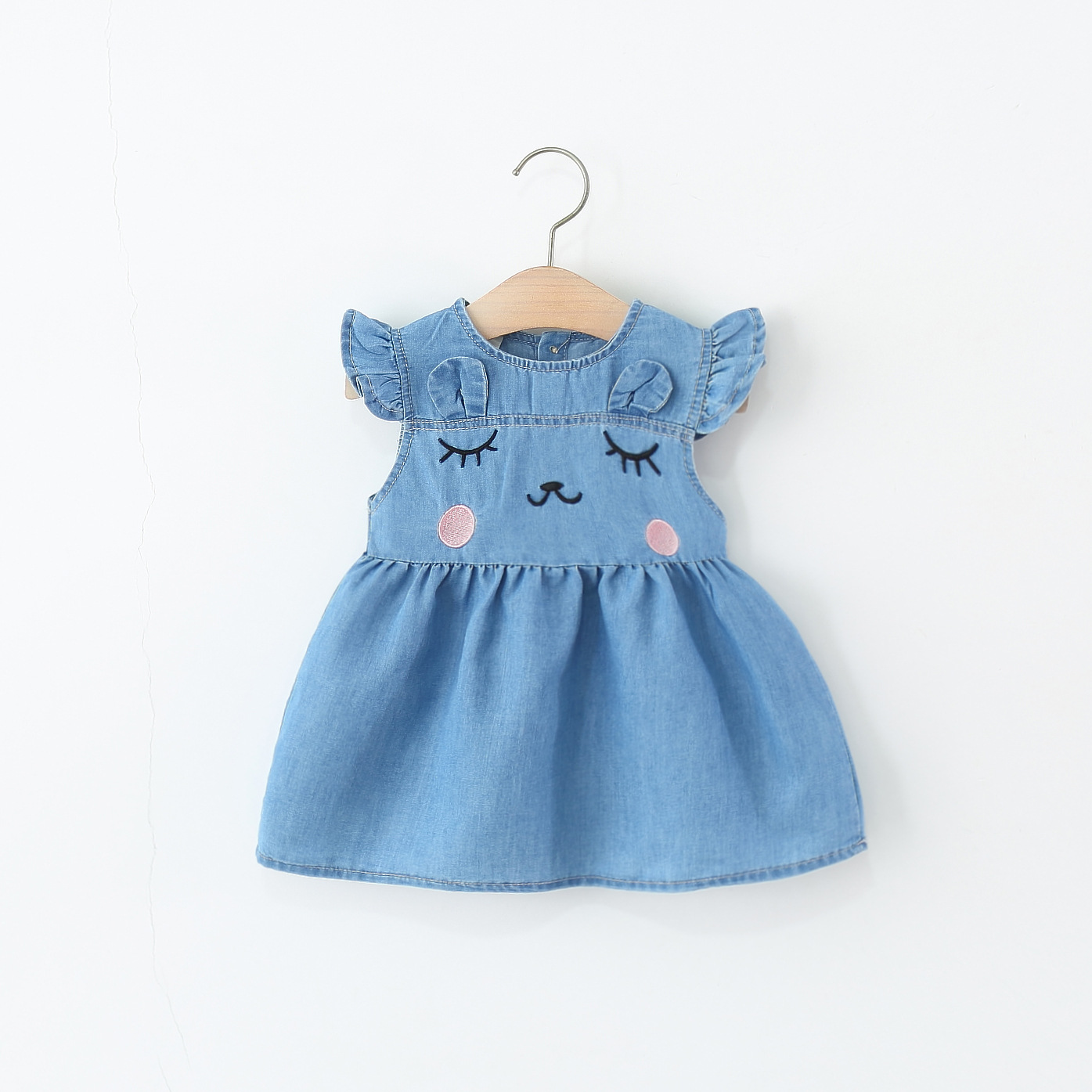 【BG369】日系閉眼兔兔牛仔無袖澎澎洋裝(2色)