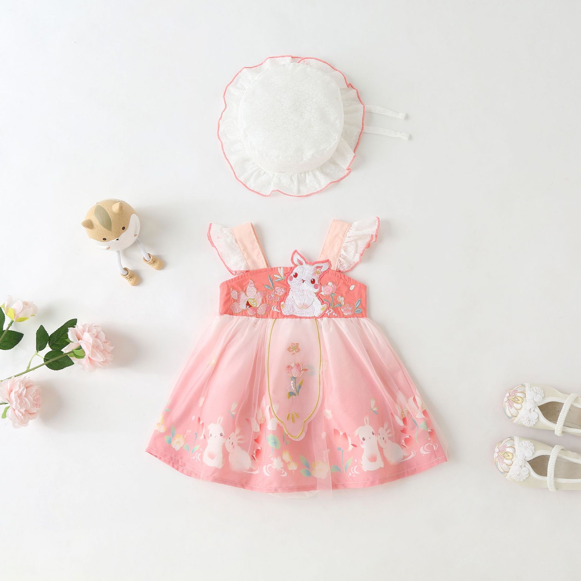 【BA303】中國風刺繡兔子無袖包屁裙(送帽子)(2色)