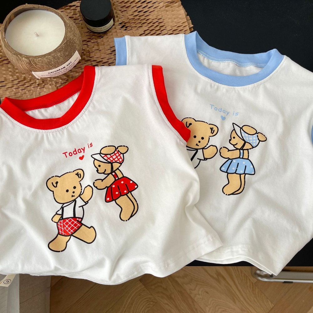【BA279】韓版兩隻熊格紋兩件式無袖短褲套裝(2色)