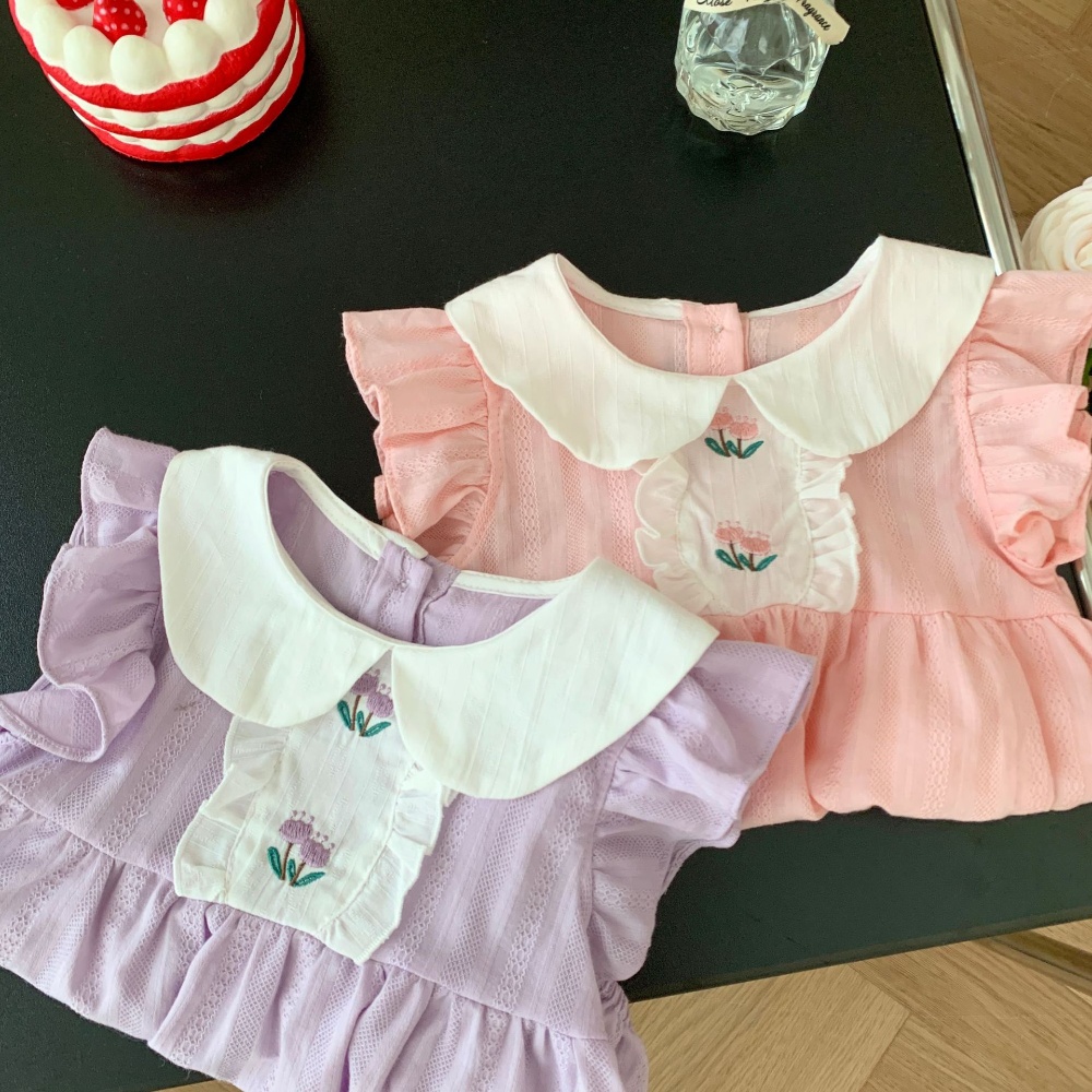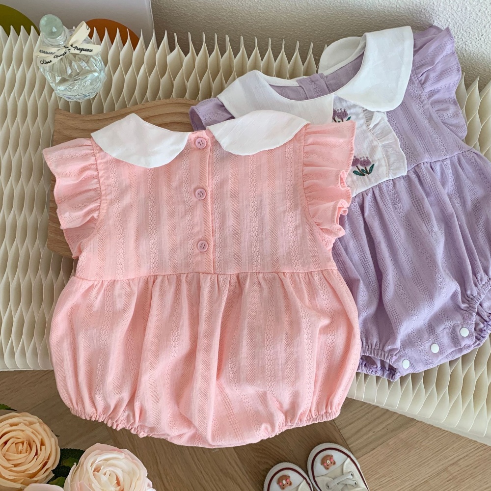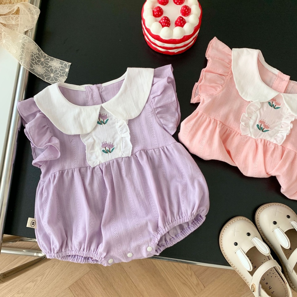 【BA273】韓版刺繡鬱金香圓領短袖包屁衣(2色)
