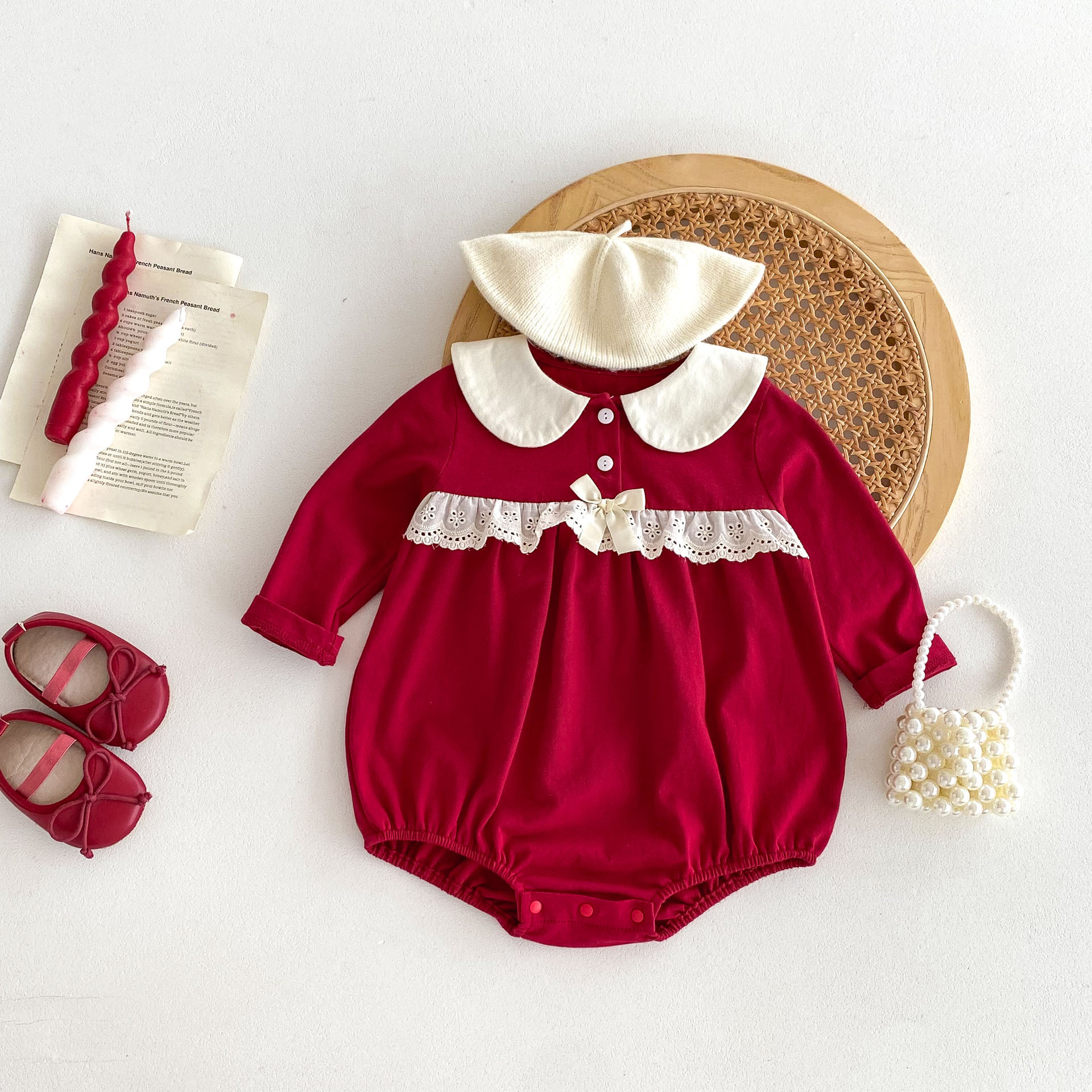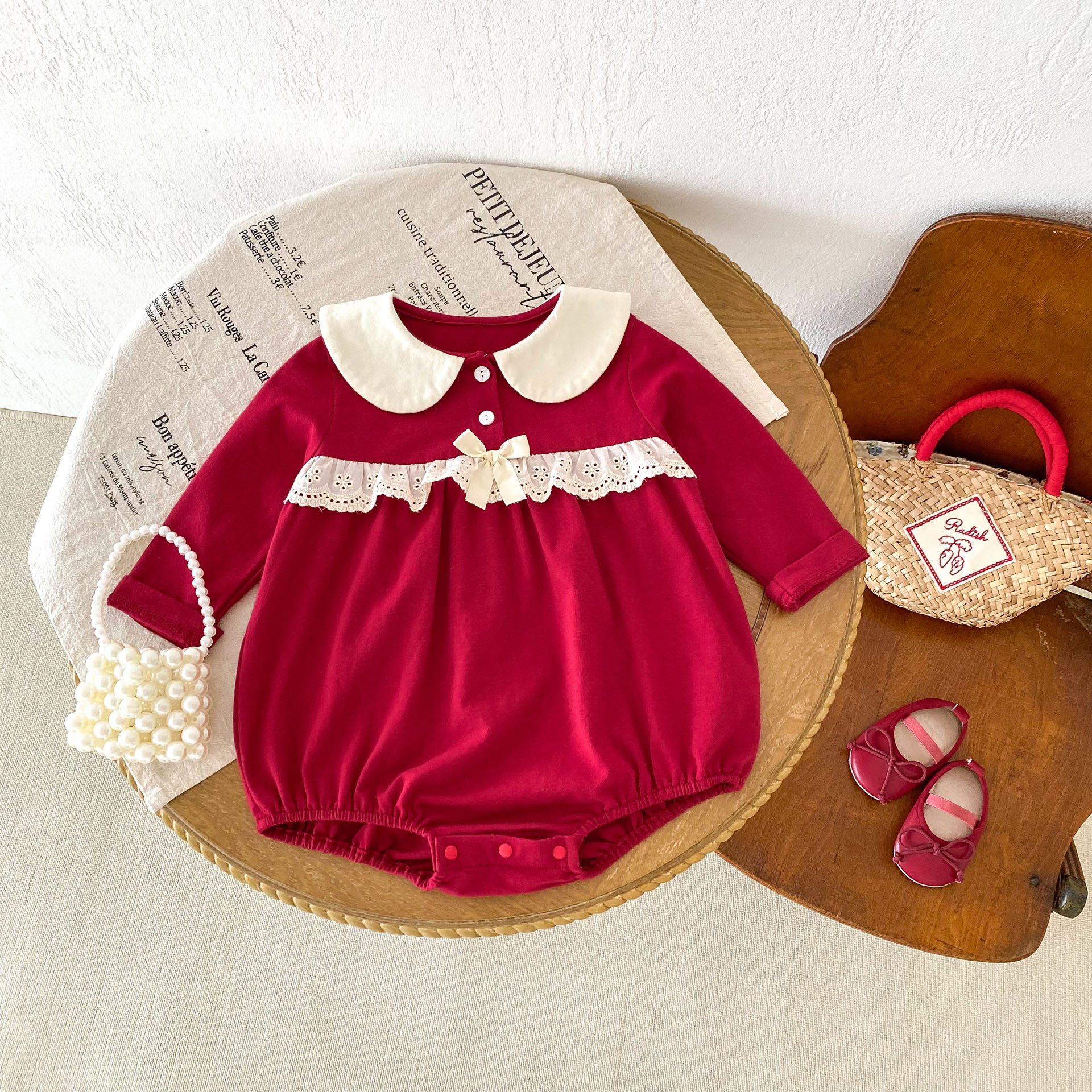 【BA487】韓版圓領蕾絲蝴蝶結長袖包屁衣(1色)
