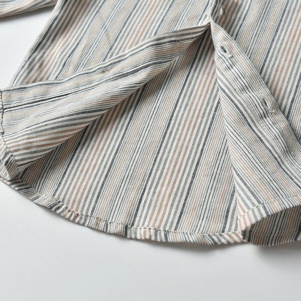 【BB272】韓版卡其領結直條紋兩件式吊帶長袖長褲套裝(1色)