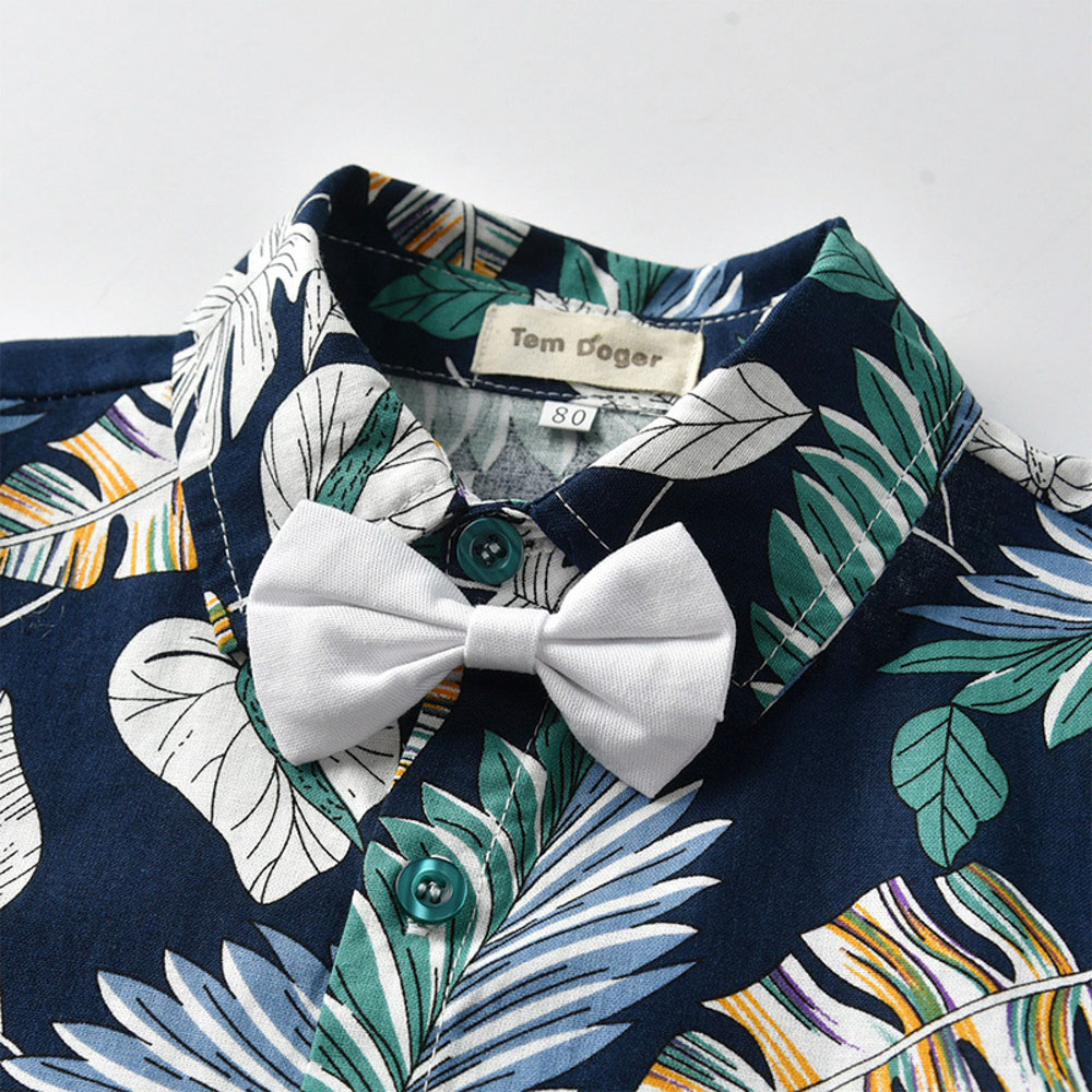 【BB273】韓版渡假花襯衫小領結兩件式吊帶長袖長褲套裝(1色)