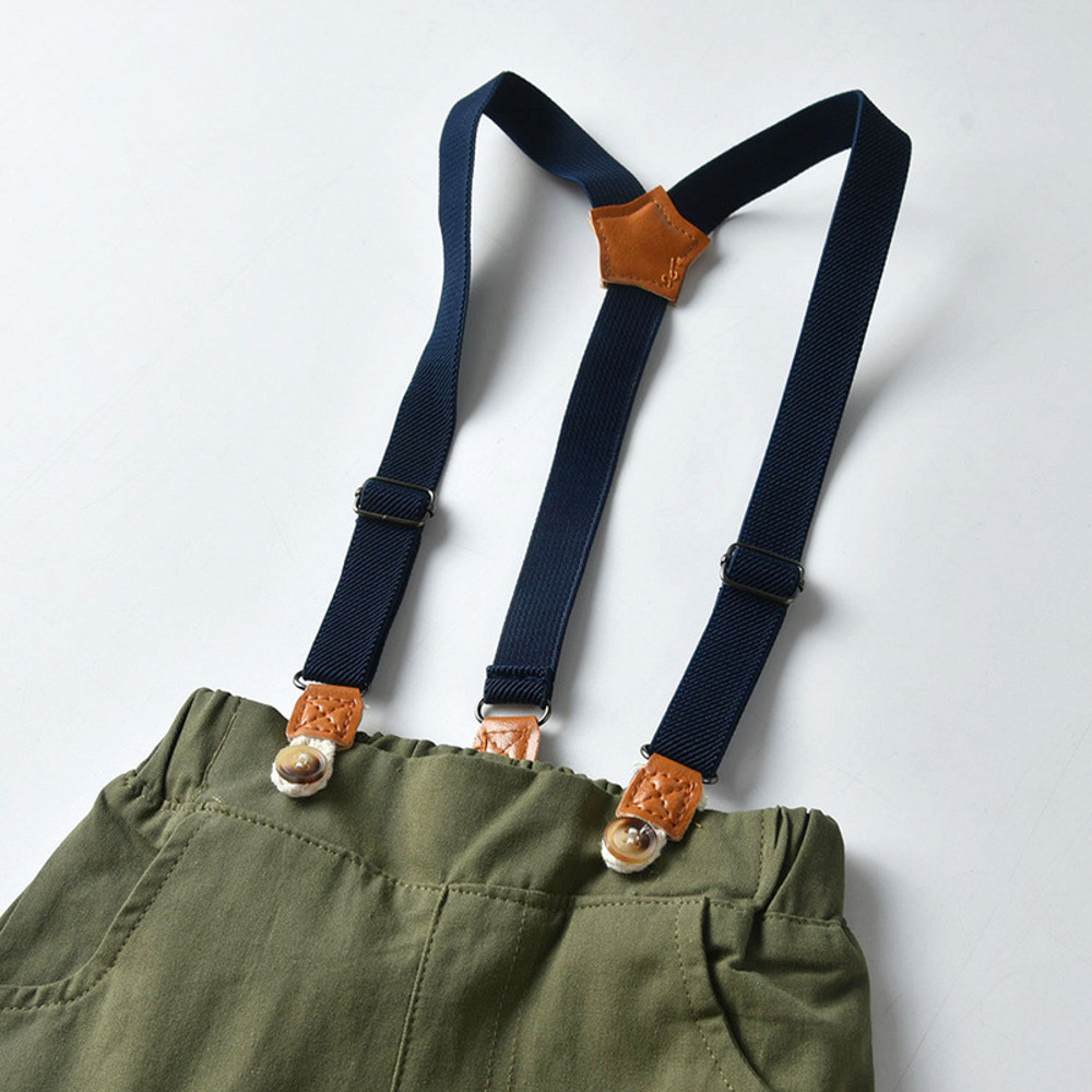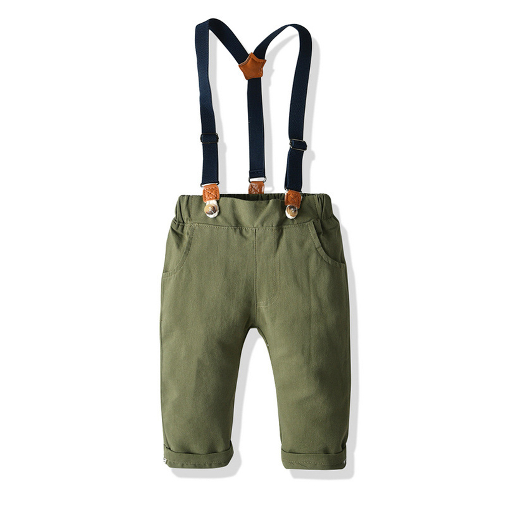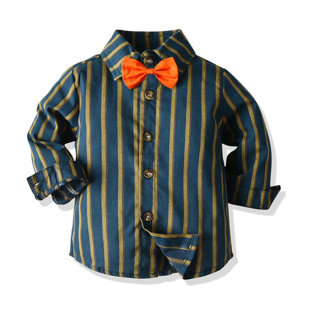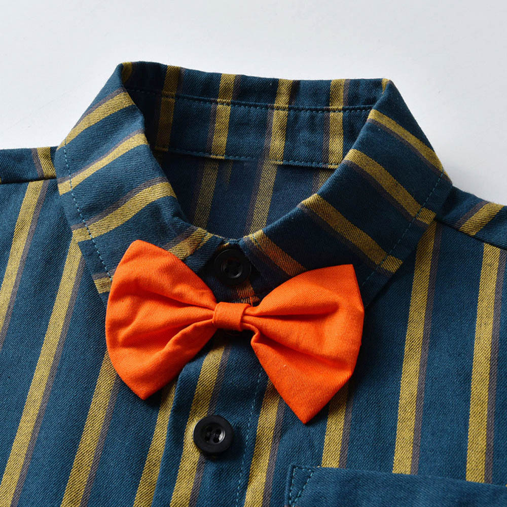 【BB274】韓版直條紋小領結兩件式吊帶長袖長褲套裝(1色)