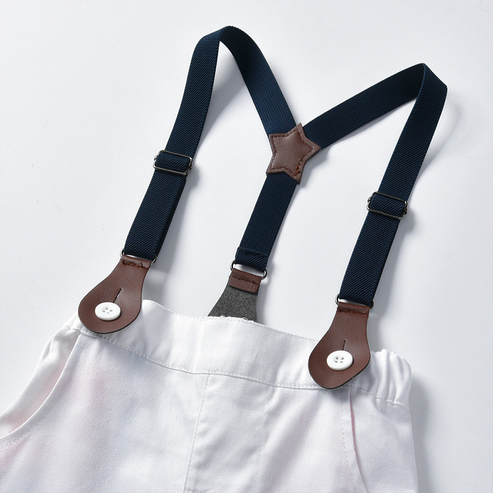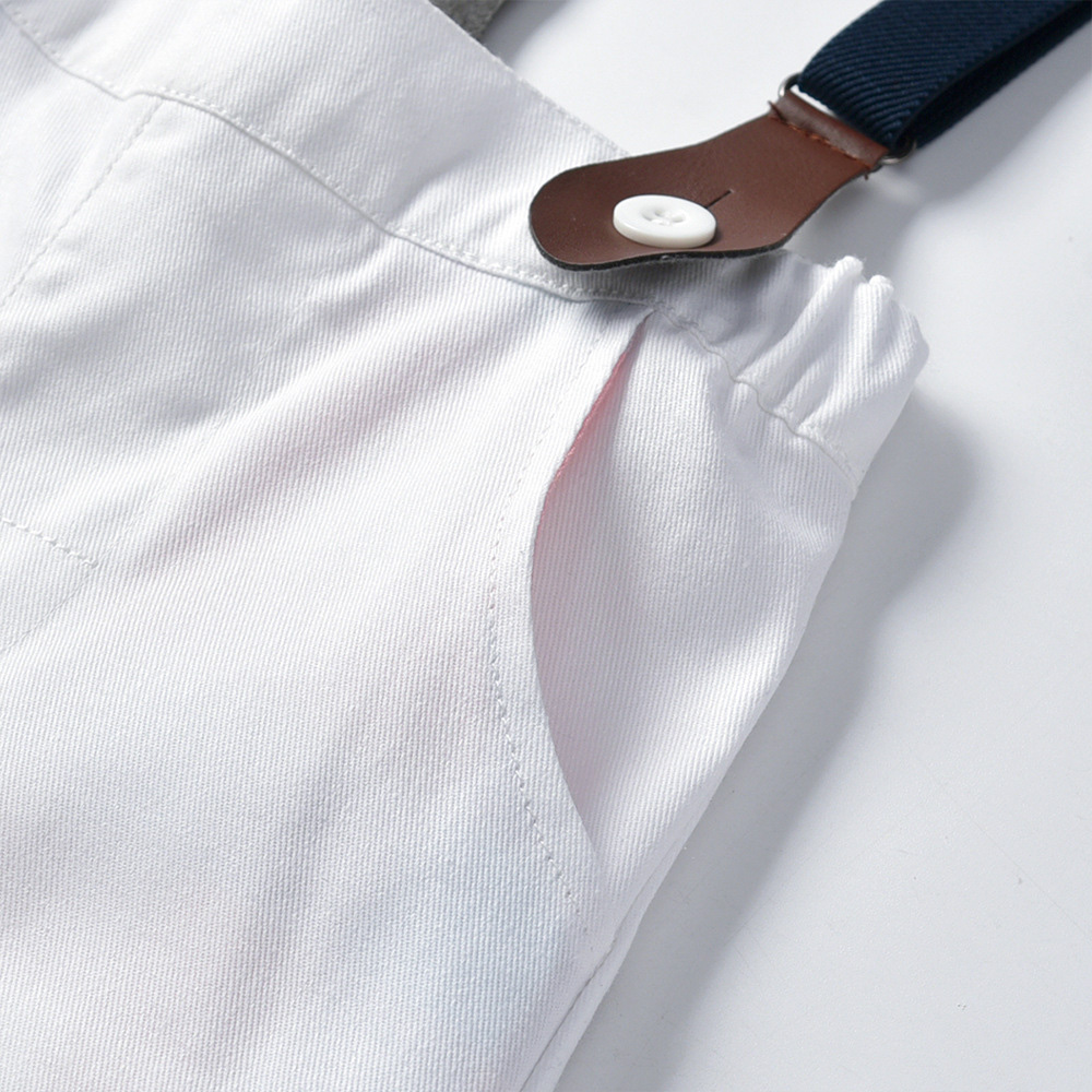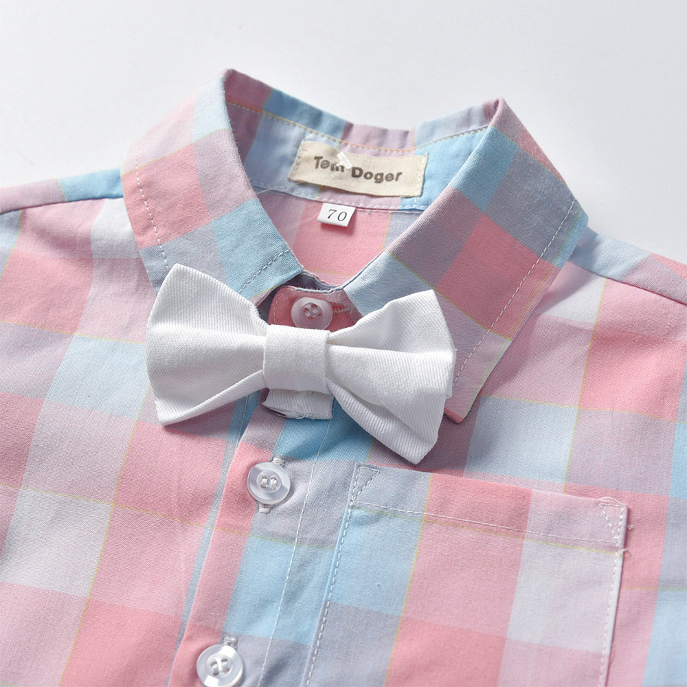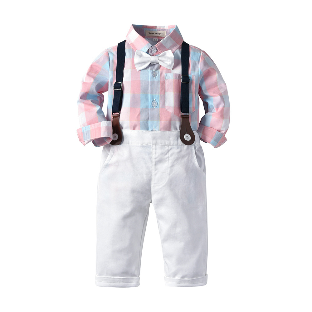 【BB281】韓版粉藍方格小領結兩件式吊帶長袖長褲套裝(1色)