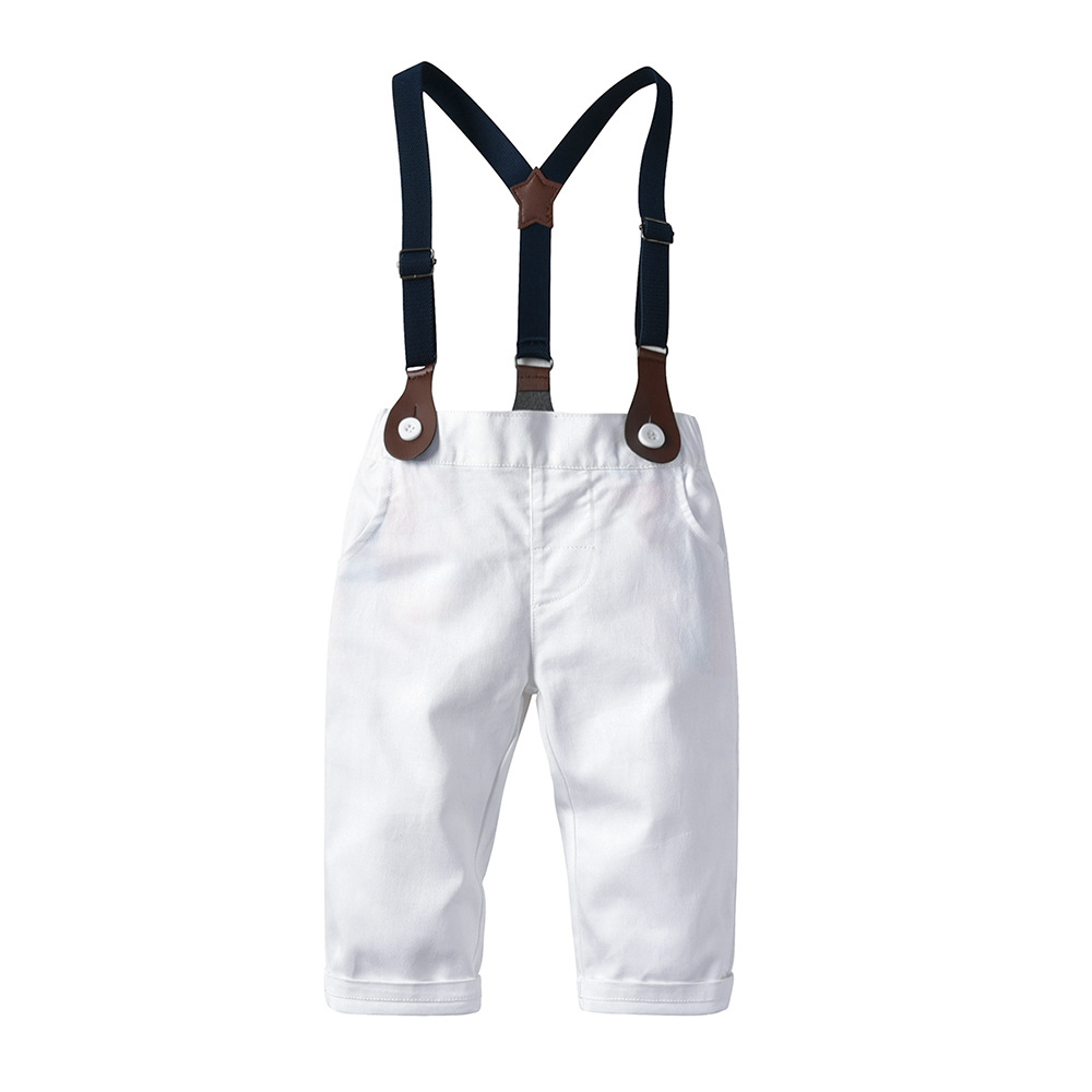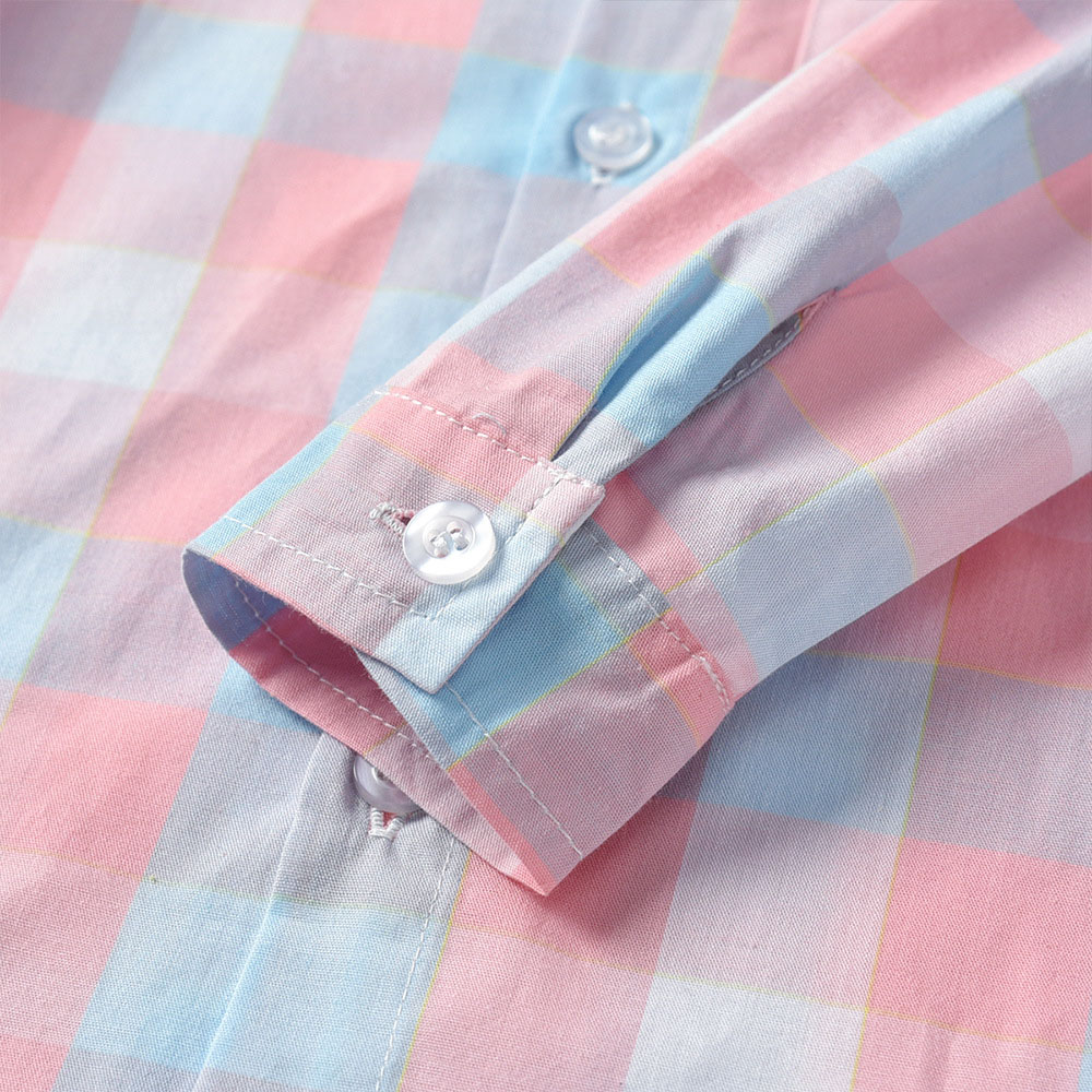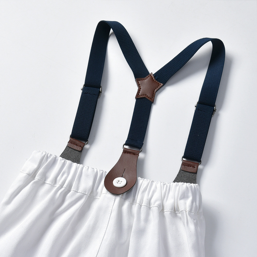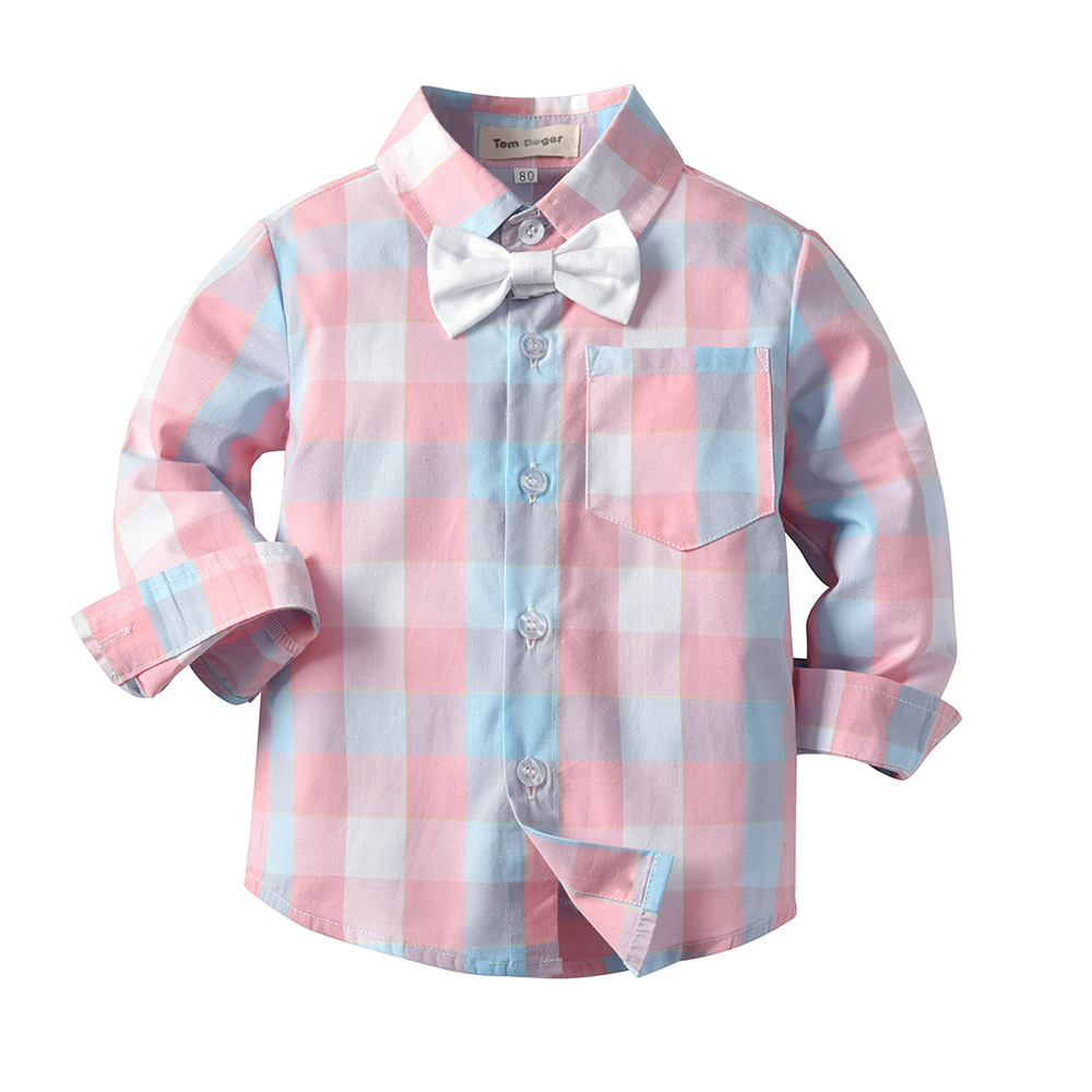 【BB281】韓版粉藍方格小領結兩件式吊帶長袖長褲套裝(1色)