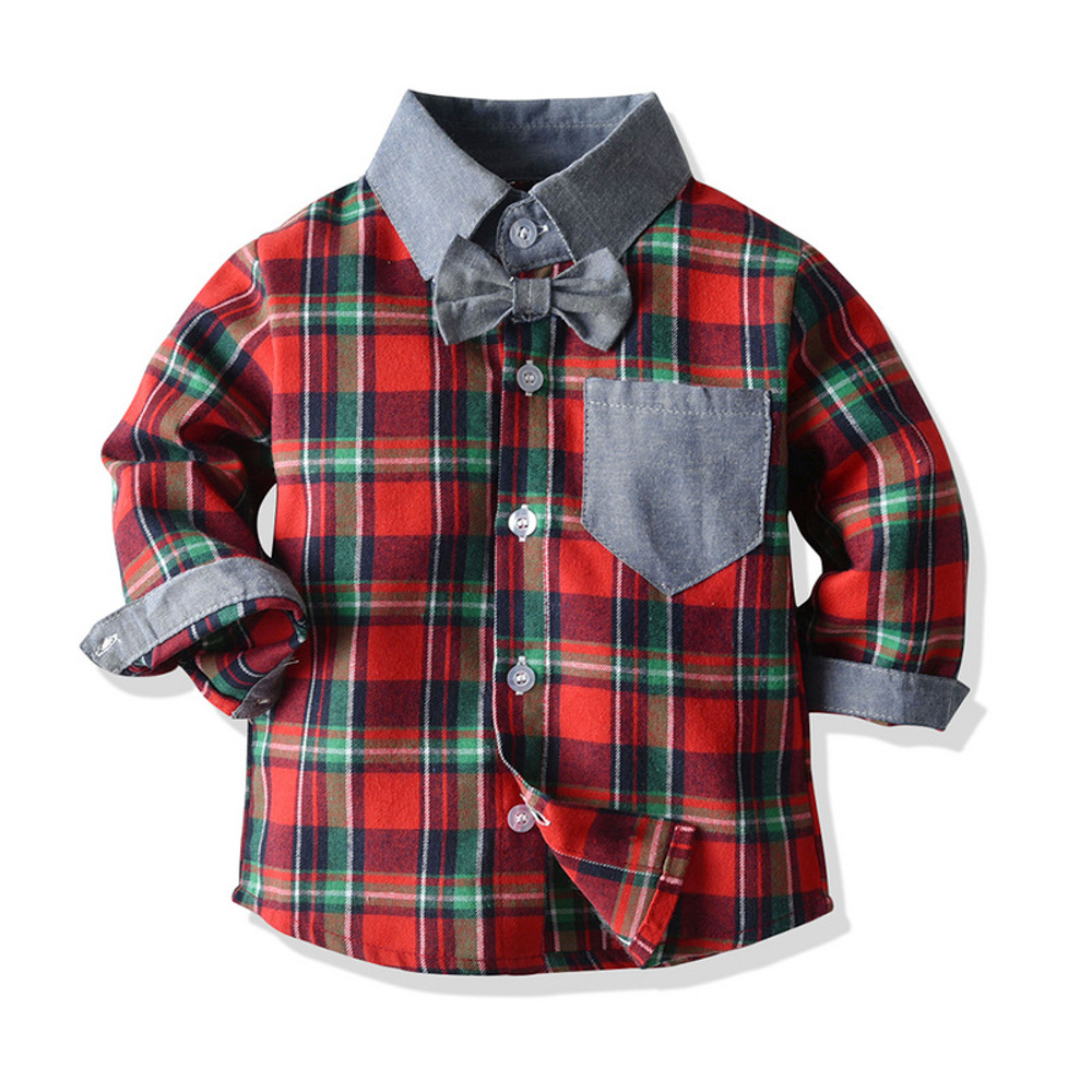 【BB285】韓版拼接格紋小領結兩件式吊帶長袖長褲套裝(1色)