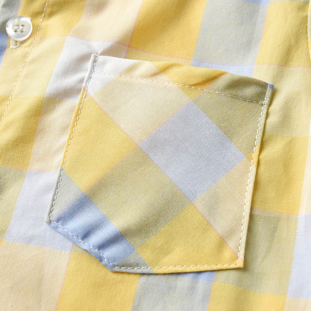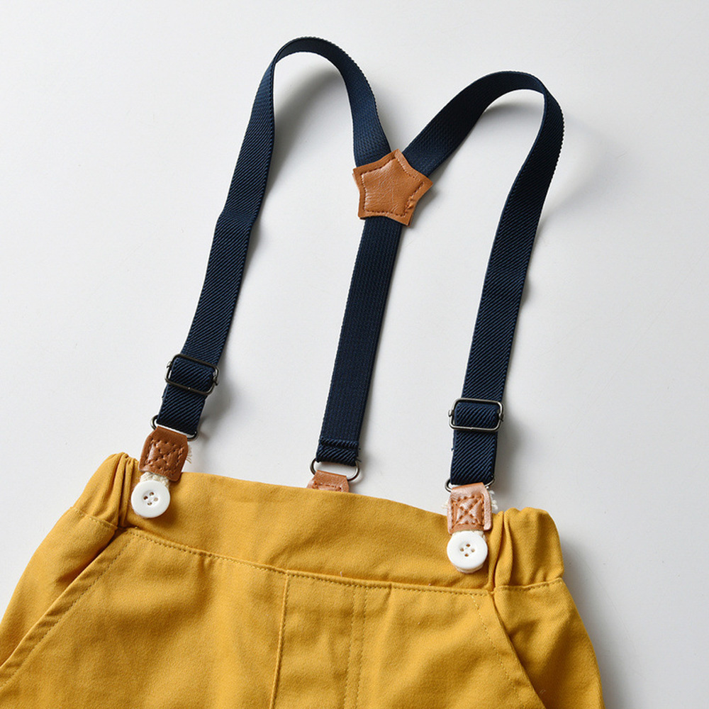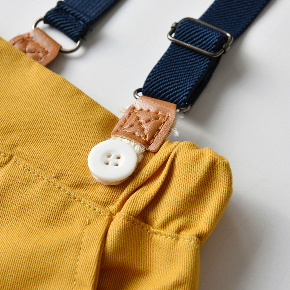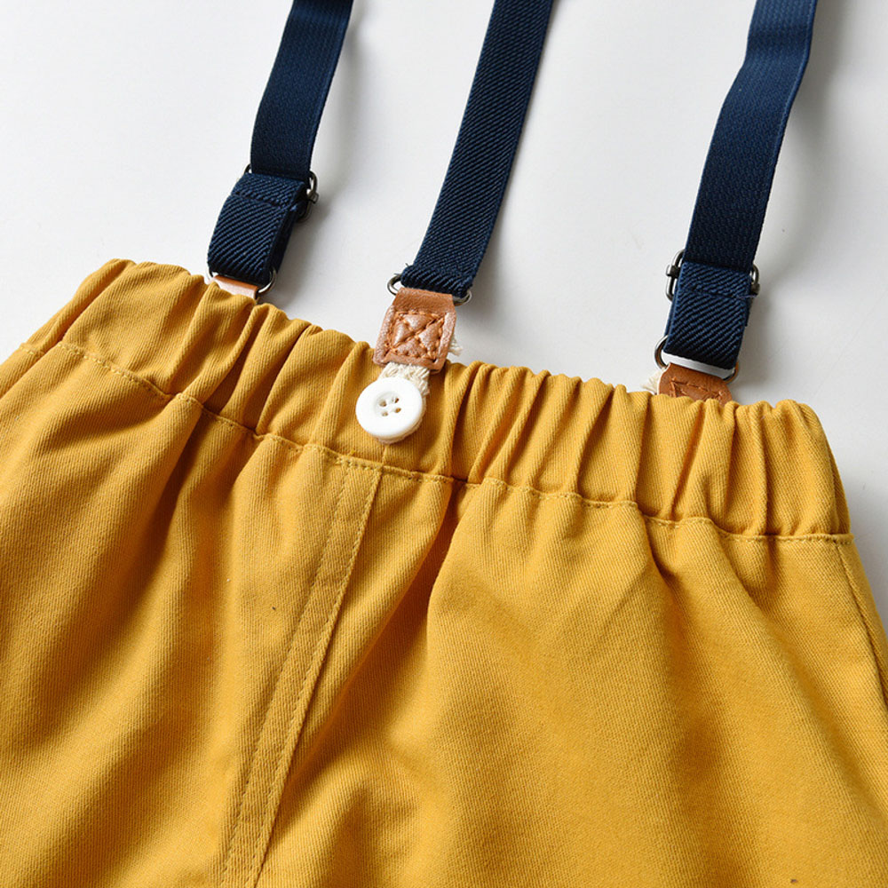 【BB286】韓版黃藍格紋小領結兩件式吊帶長袖長褲套裝(1色)