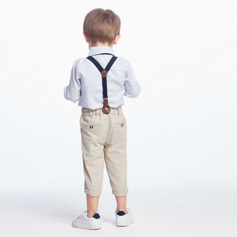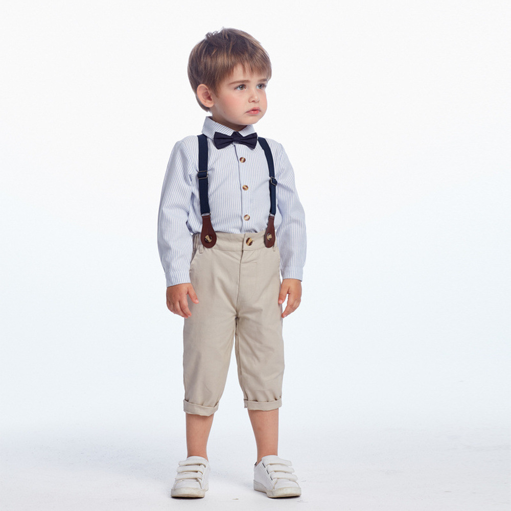 【BB287】韓版直條紋小領結兩件式吊帶長袖長褲套裝(3色)