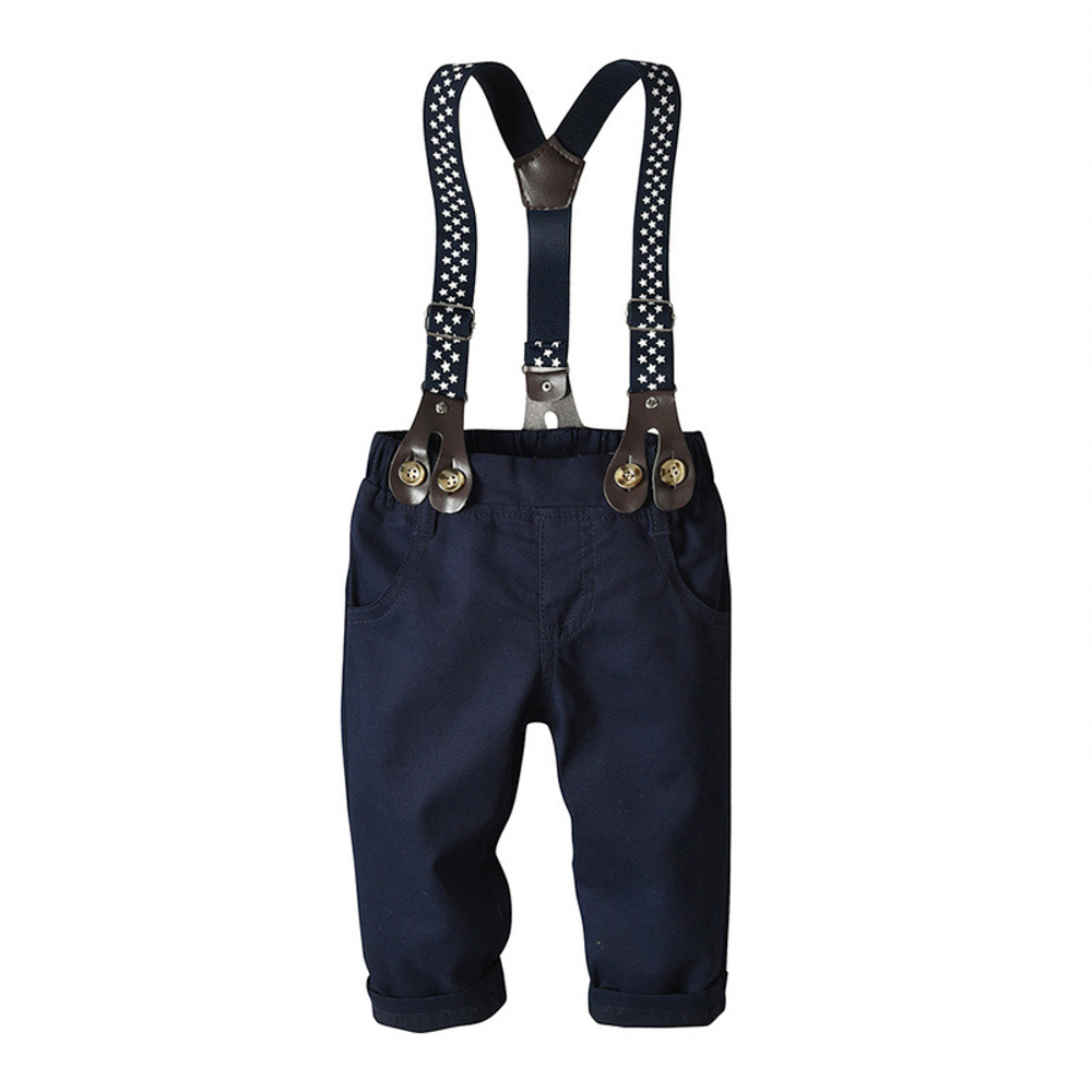 【BB288】韓版純色口袋小領結兩件式星星吊帶長袖長褲套裝(4色)