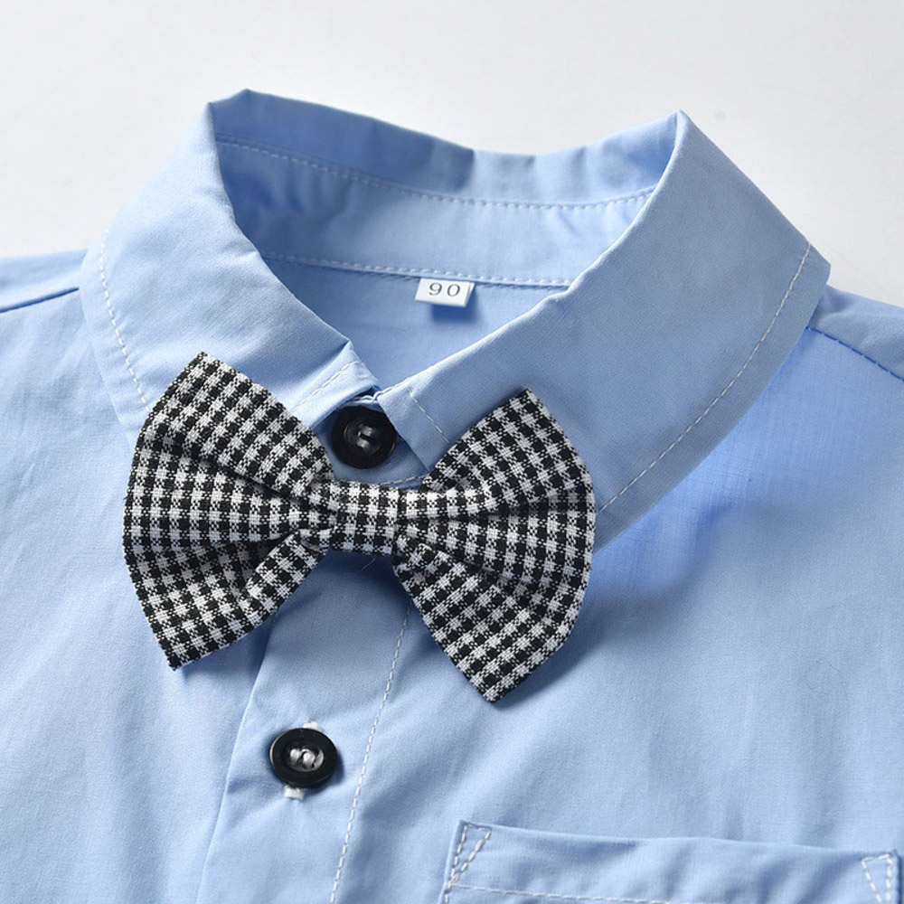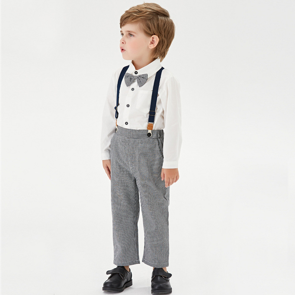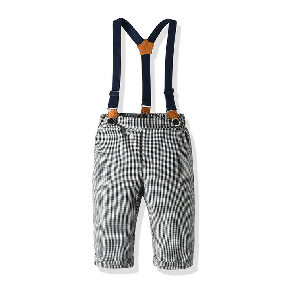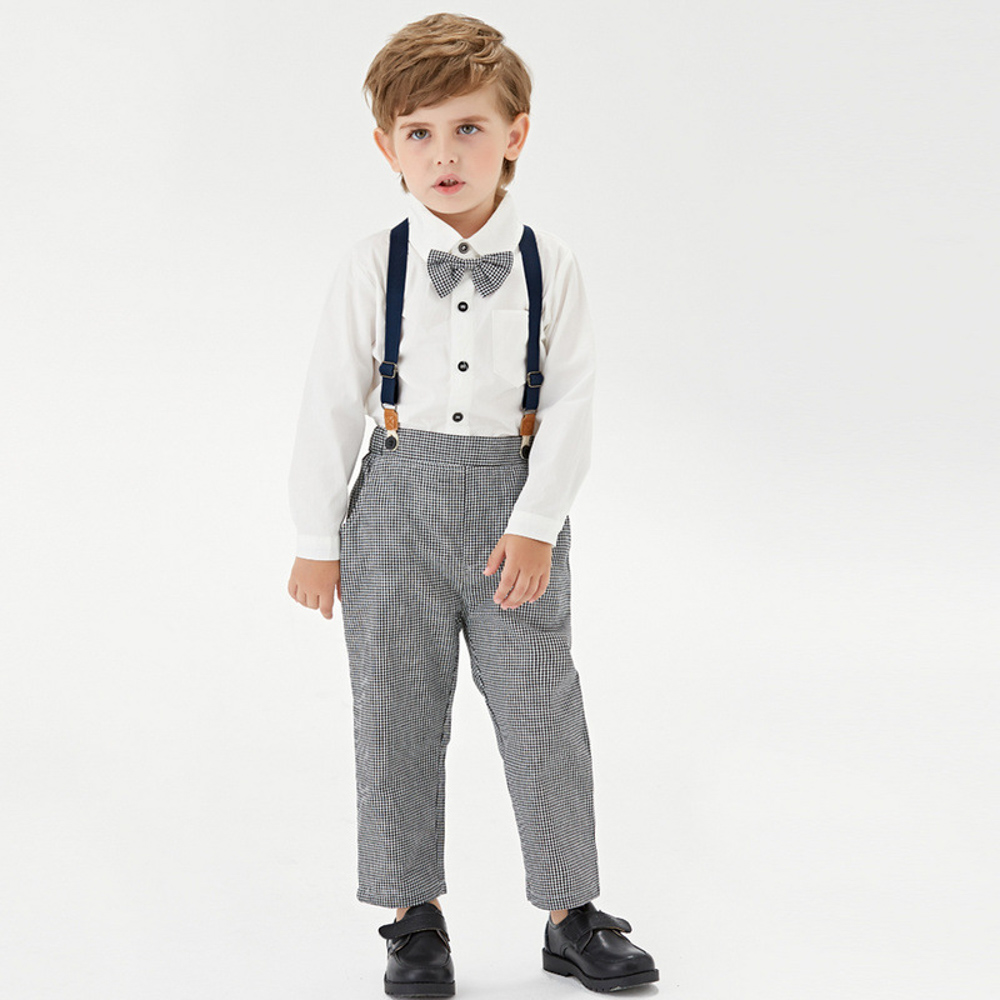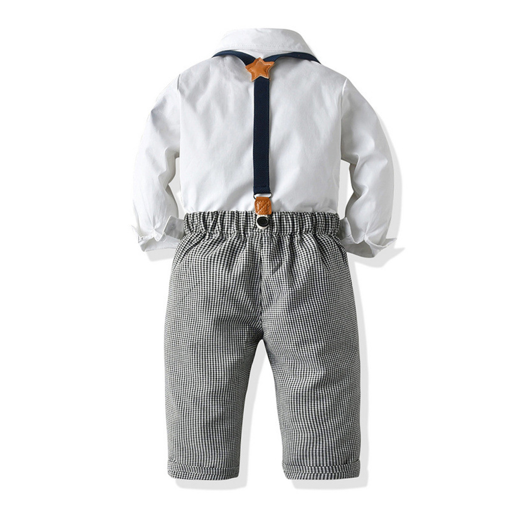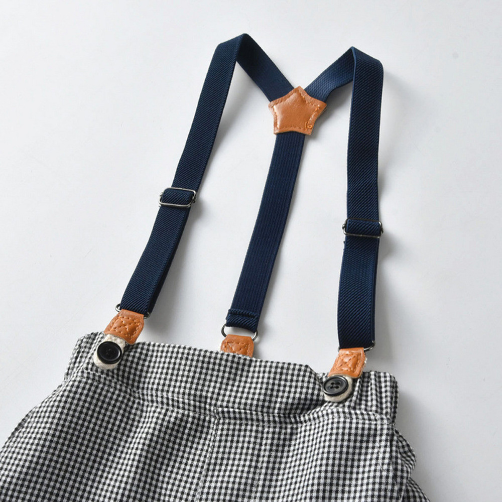 【BB290】韓版小格紋領結兩件式吊帶長袖長褲套裝(2色)