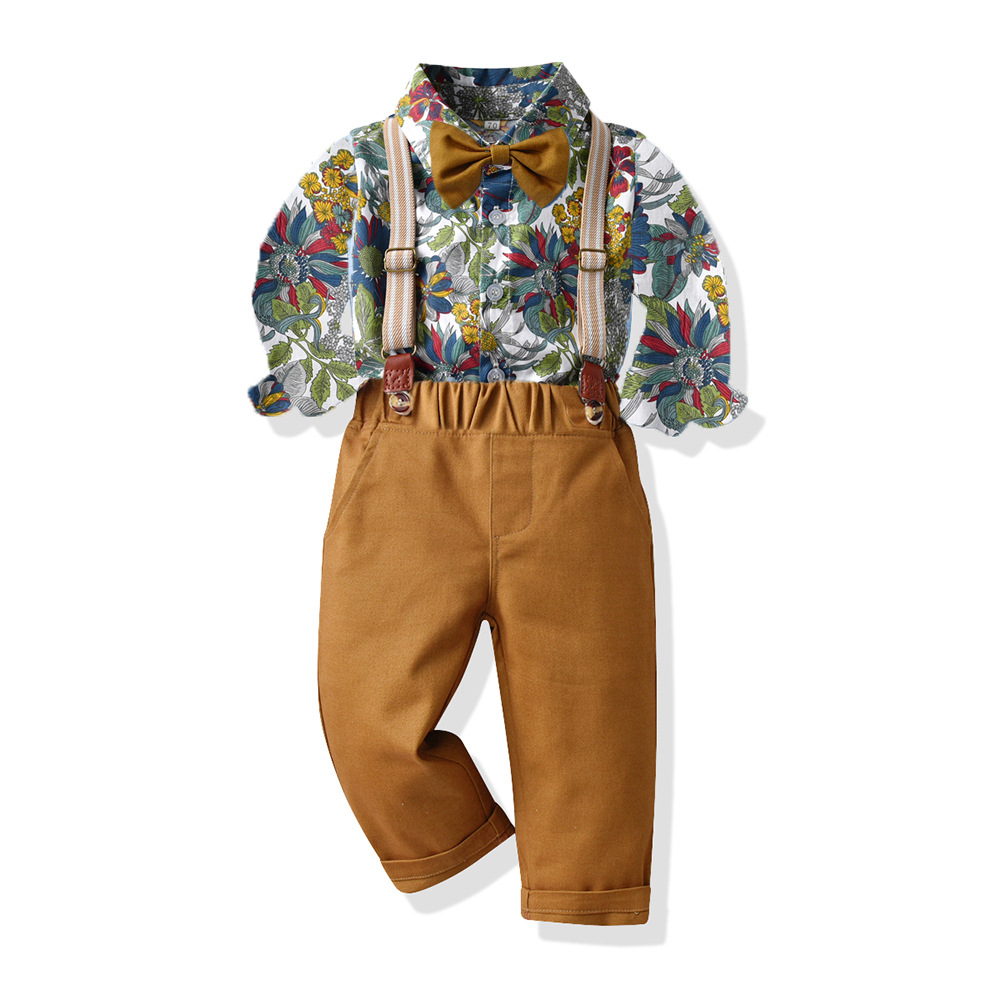 【BB292】韓版繽紛熱帶雨林小領結兩件式吊帶長袖長褲套裝(1色)