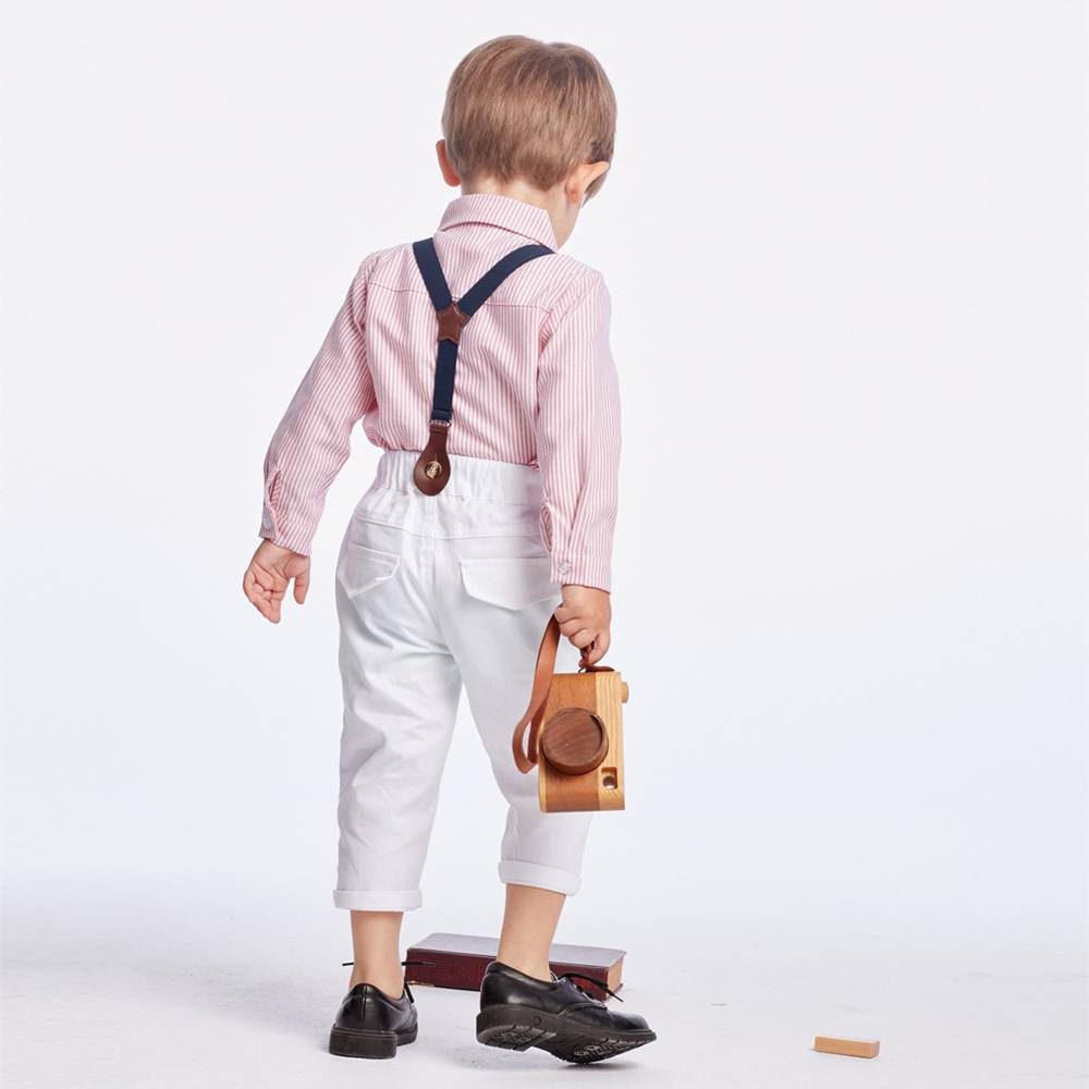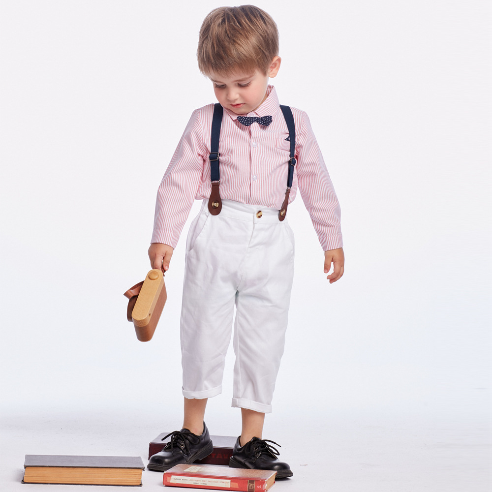 【BB296】韓版直條紋點點小領結兩件式吊帶長袖長褲套裝(1色)