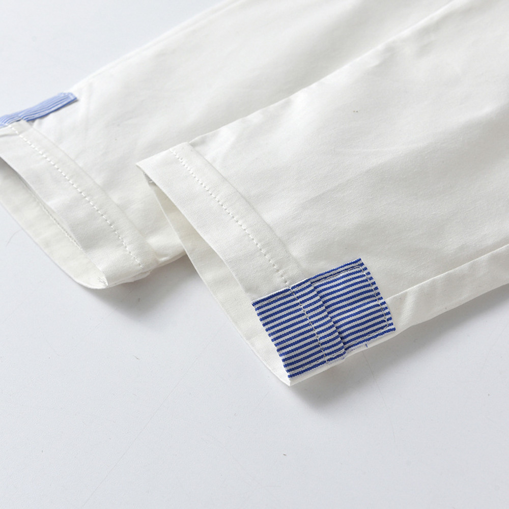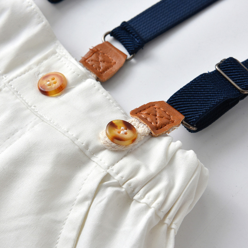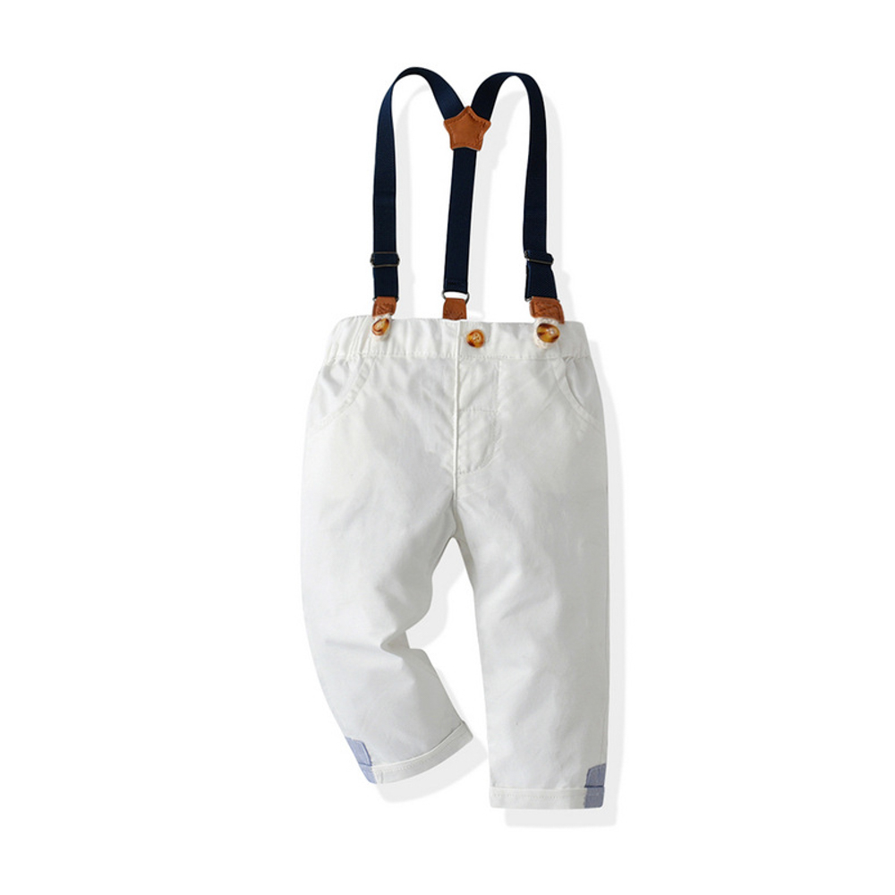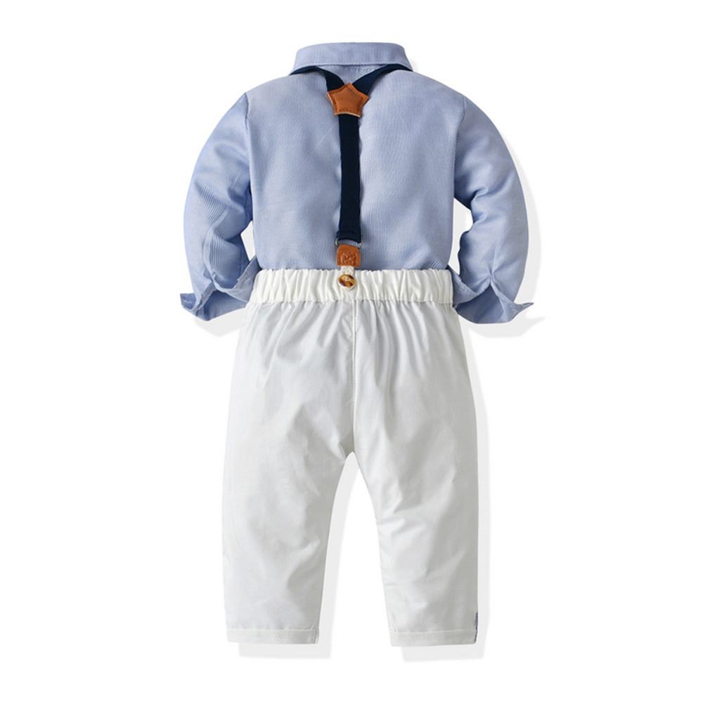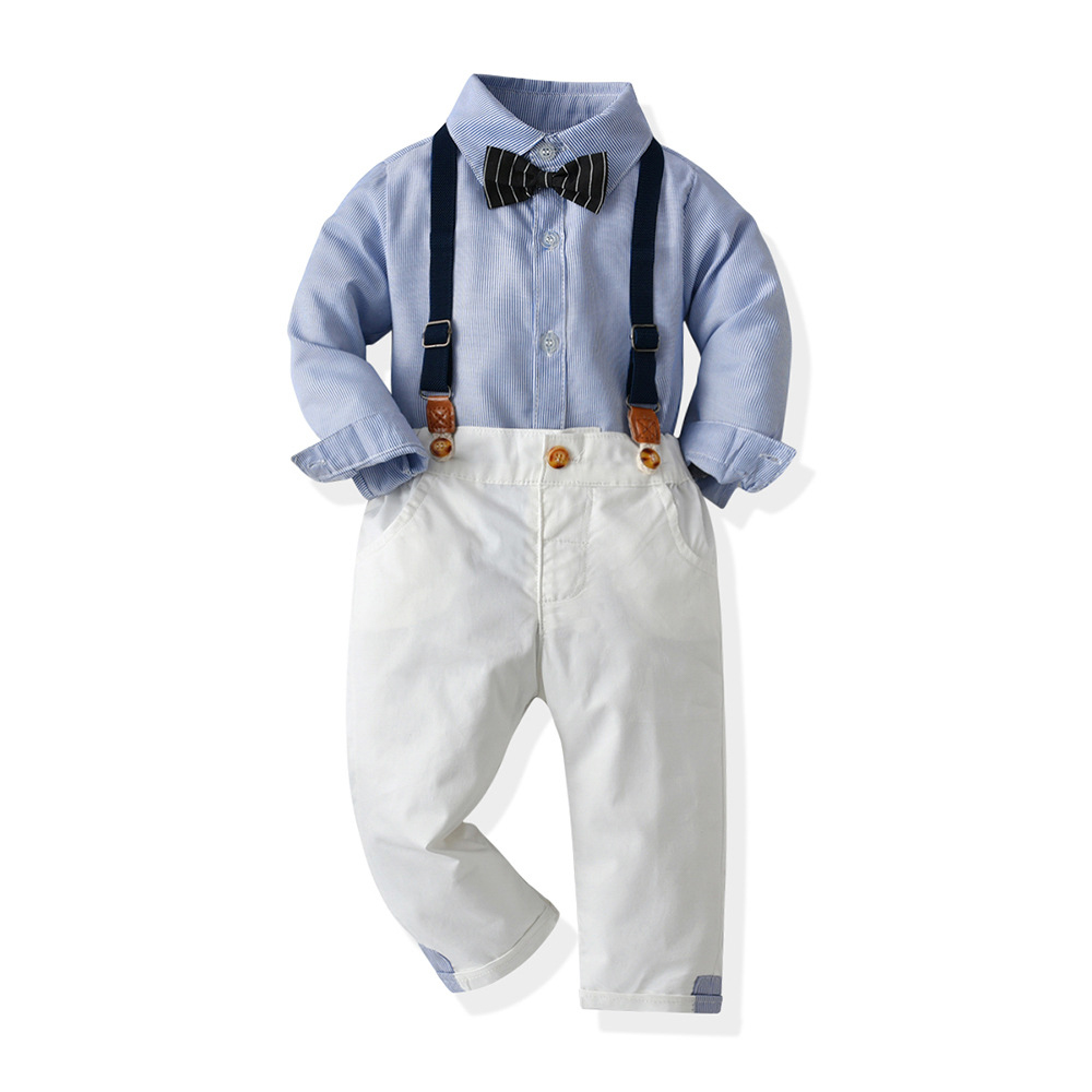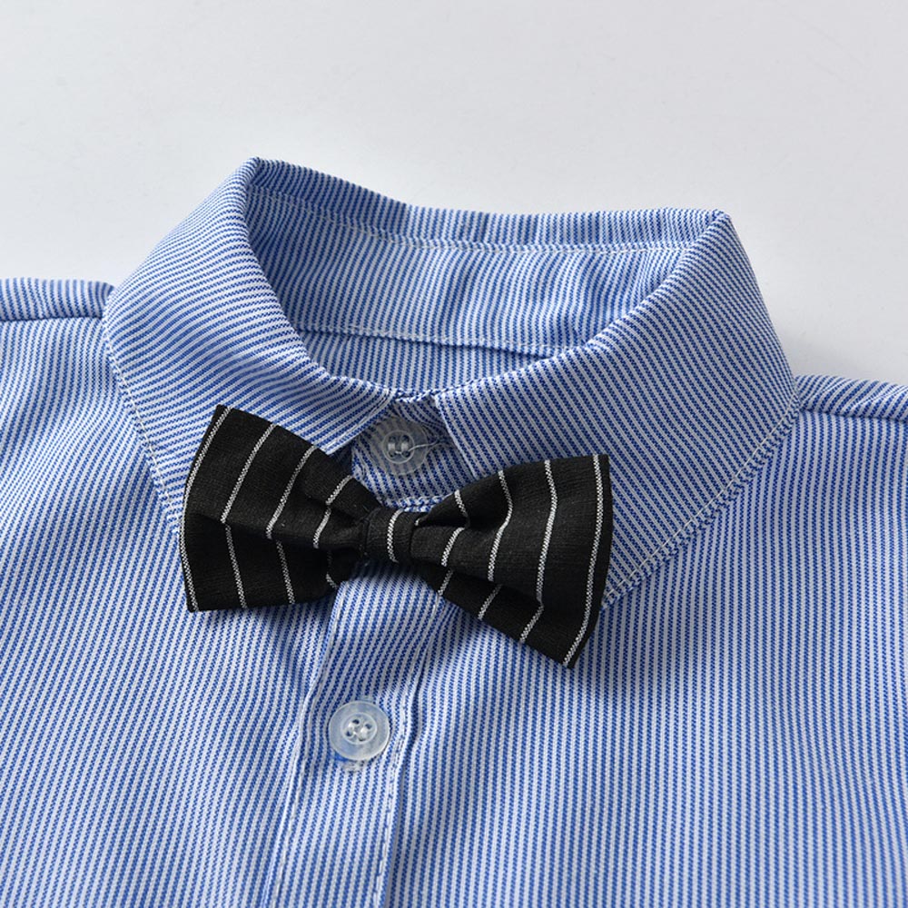 【BB300】韓版藍襯衫條紋小領結兩件式吊帶長袖長褲套裝(1色)