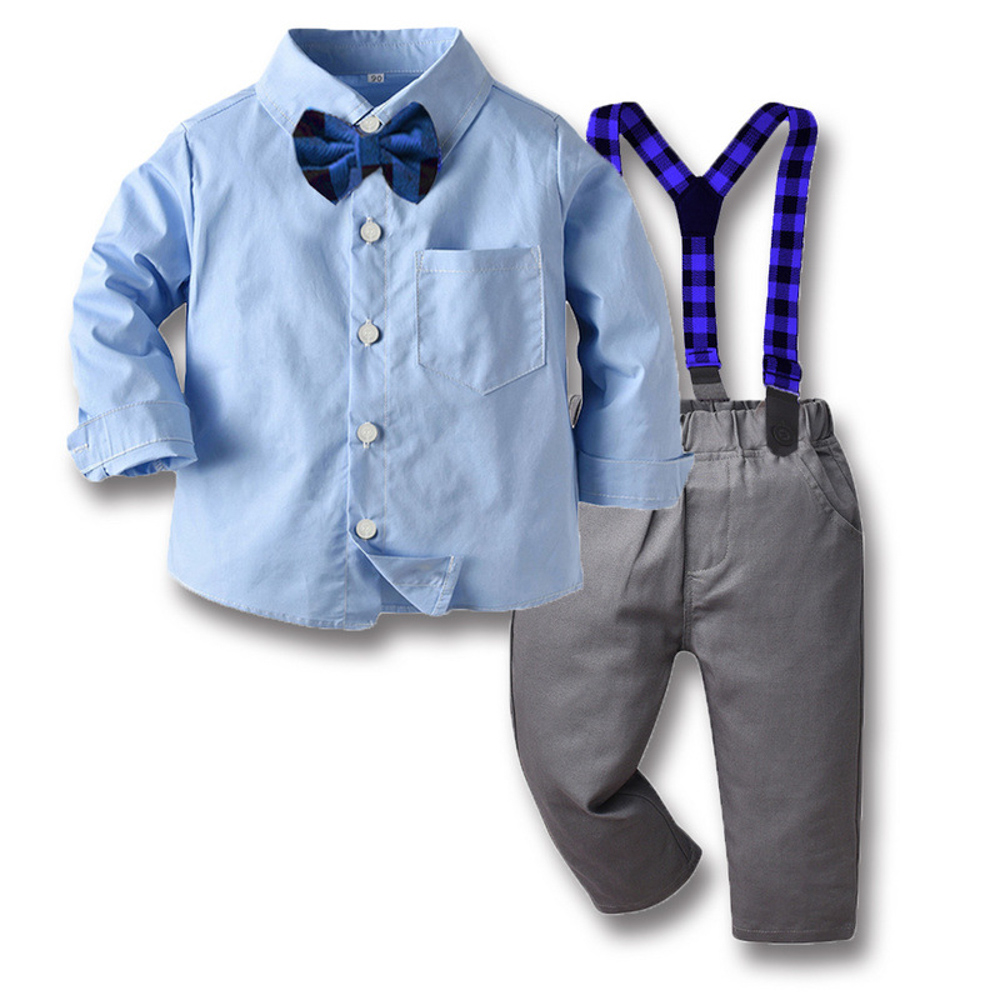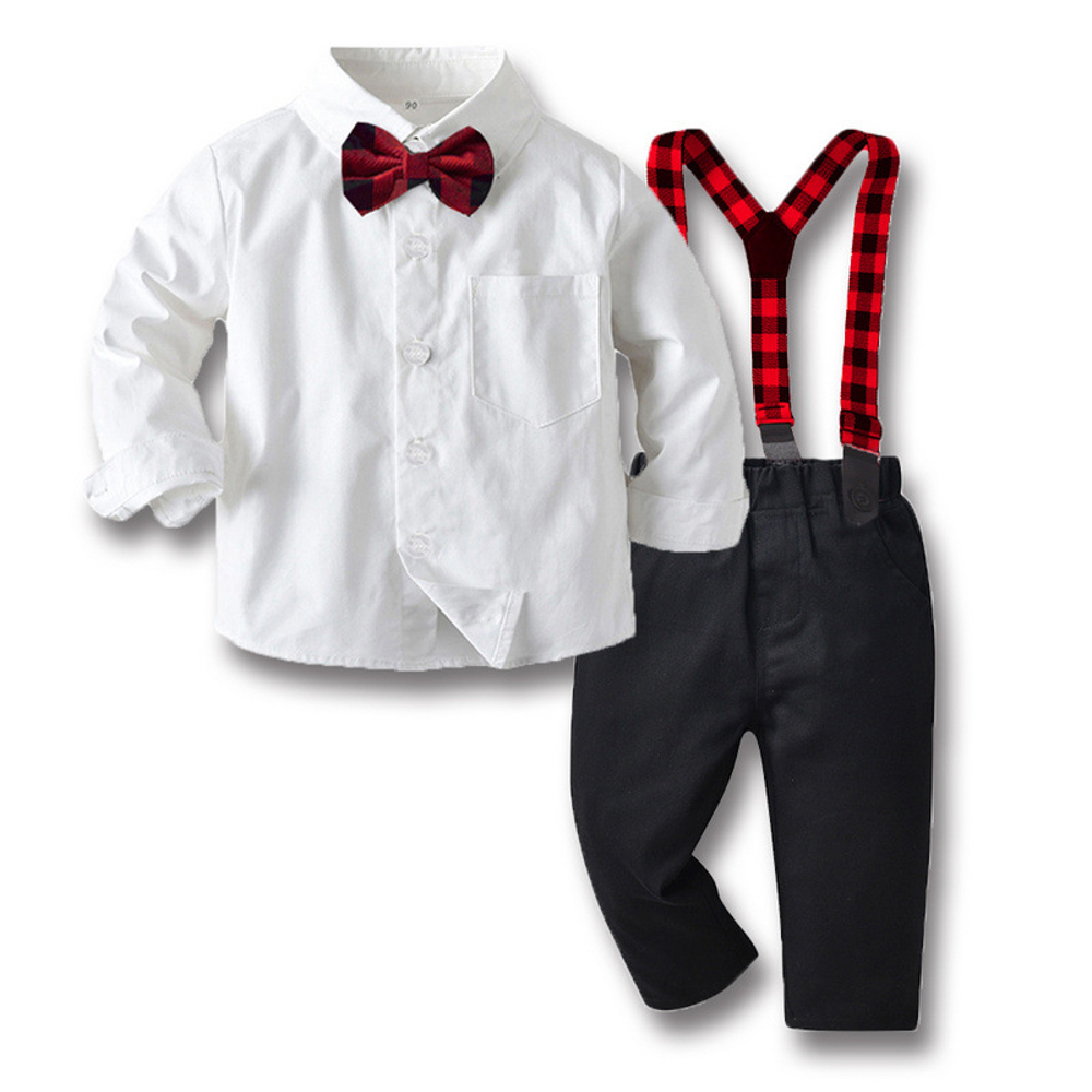 【BB305】韓版撞色格紋小領結兩件式吊帶長袖長褲套裝(2色)