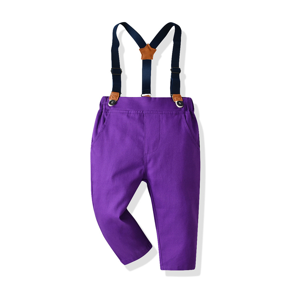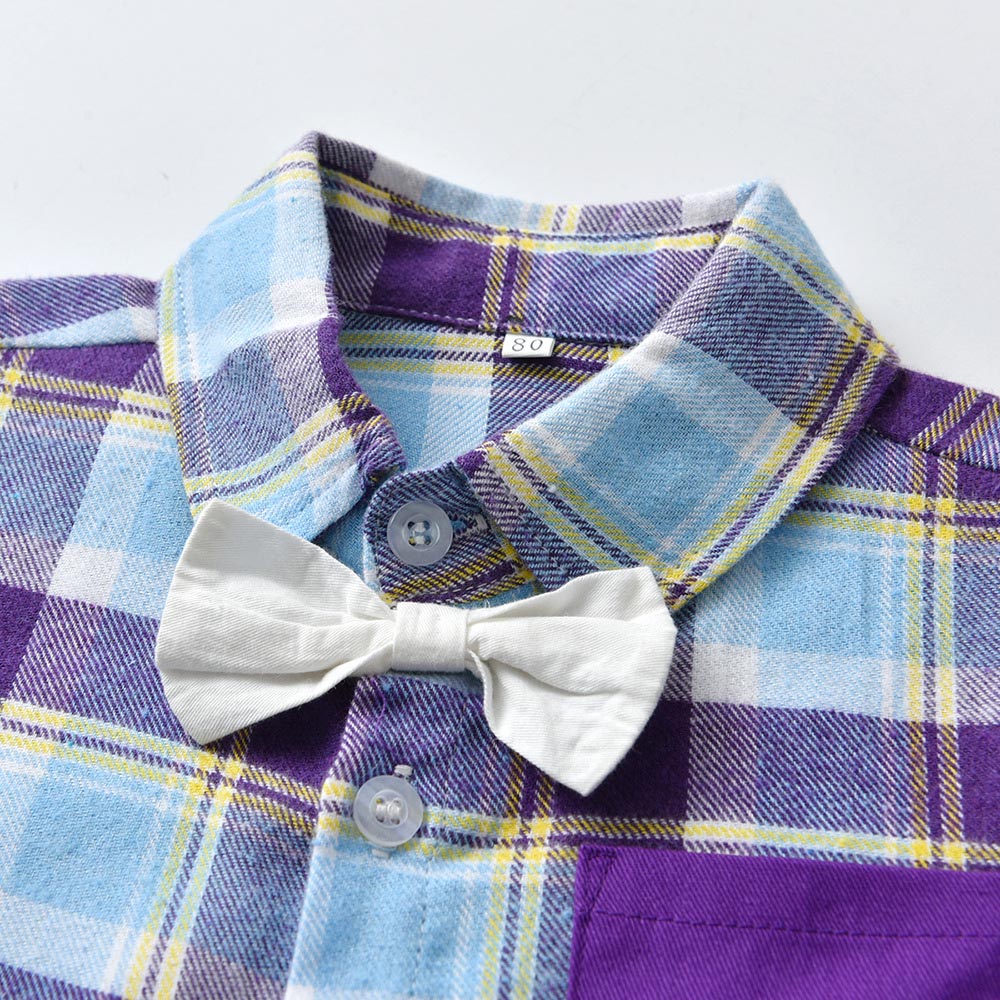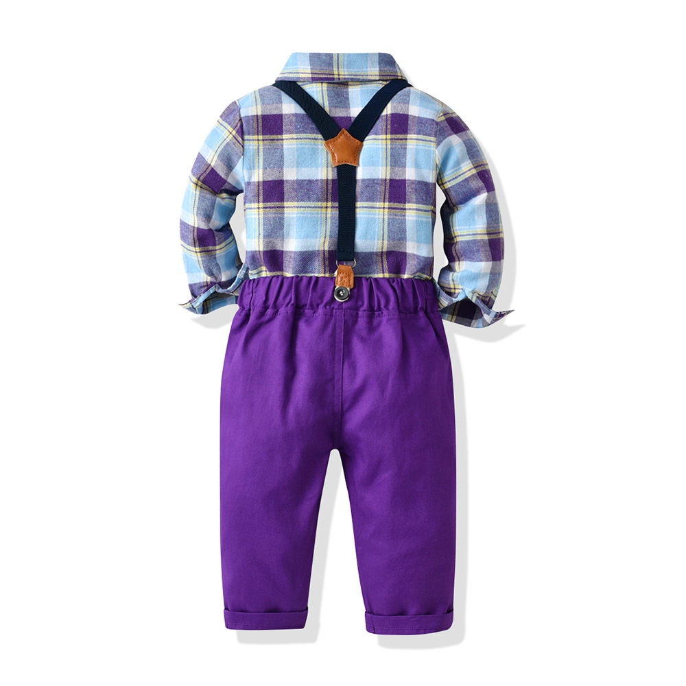 【BB314】韓版繽紛紫格紋小領結兩件式吊帶長袖長褲套裝(1色)