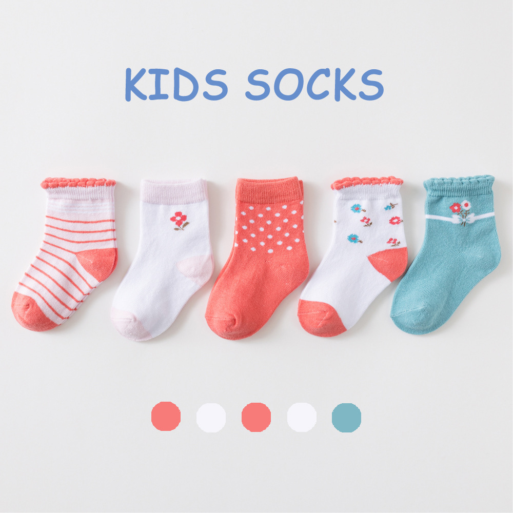 【SB027】童襪|日系小花點點條紋中筒襪(5雙1組)