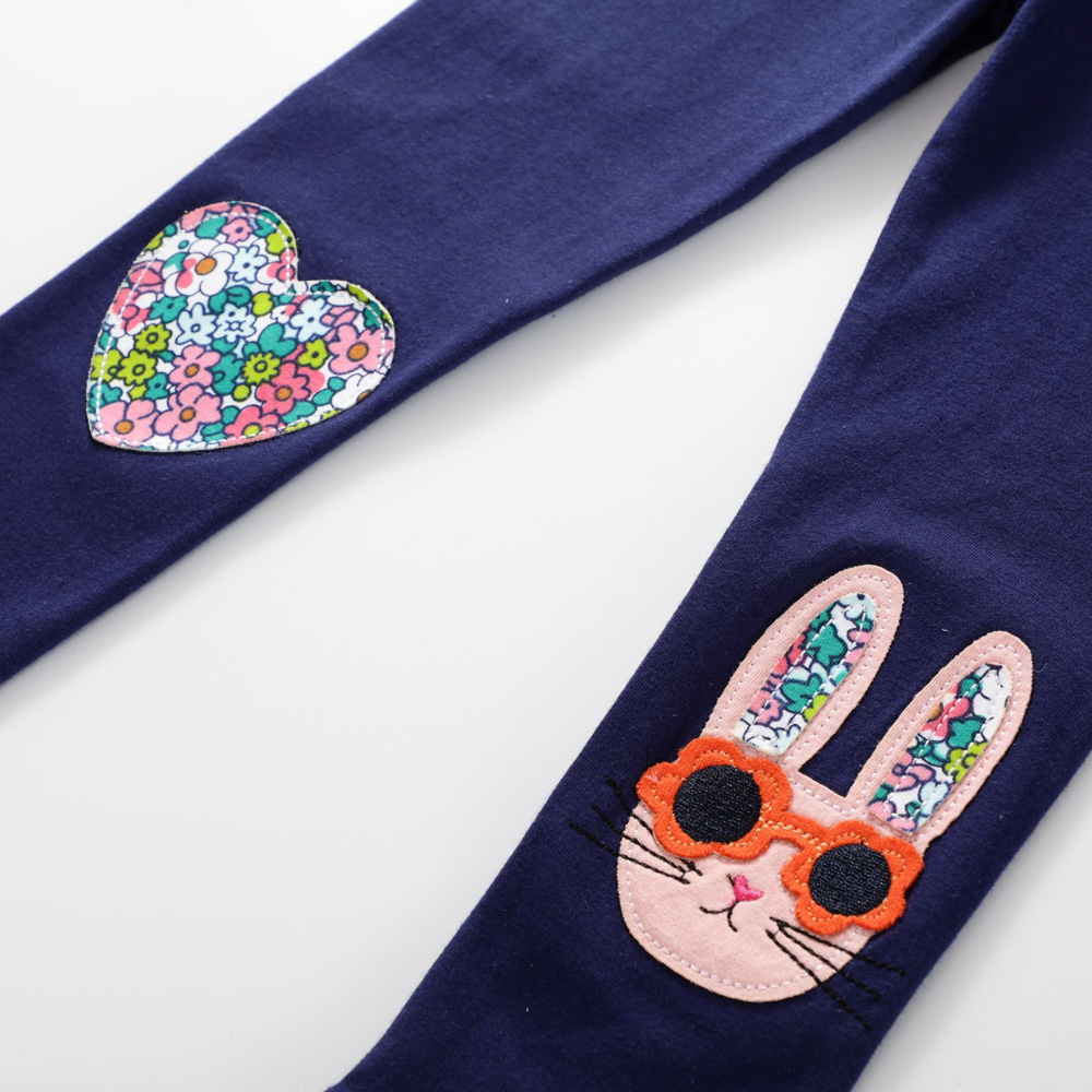 【BT074】韓版刺繡愛心墨鏡兔彈力長褲(1色)