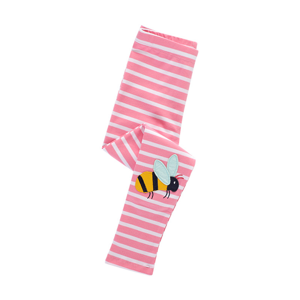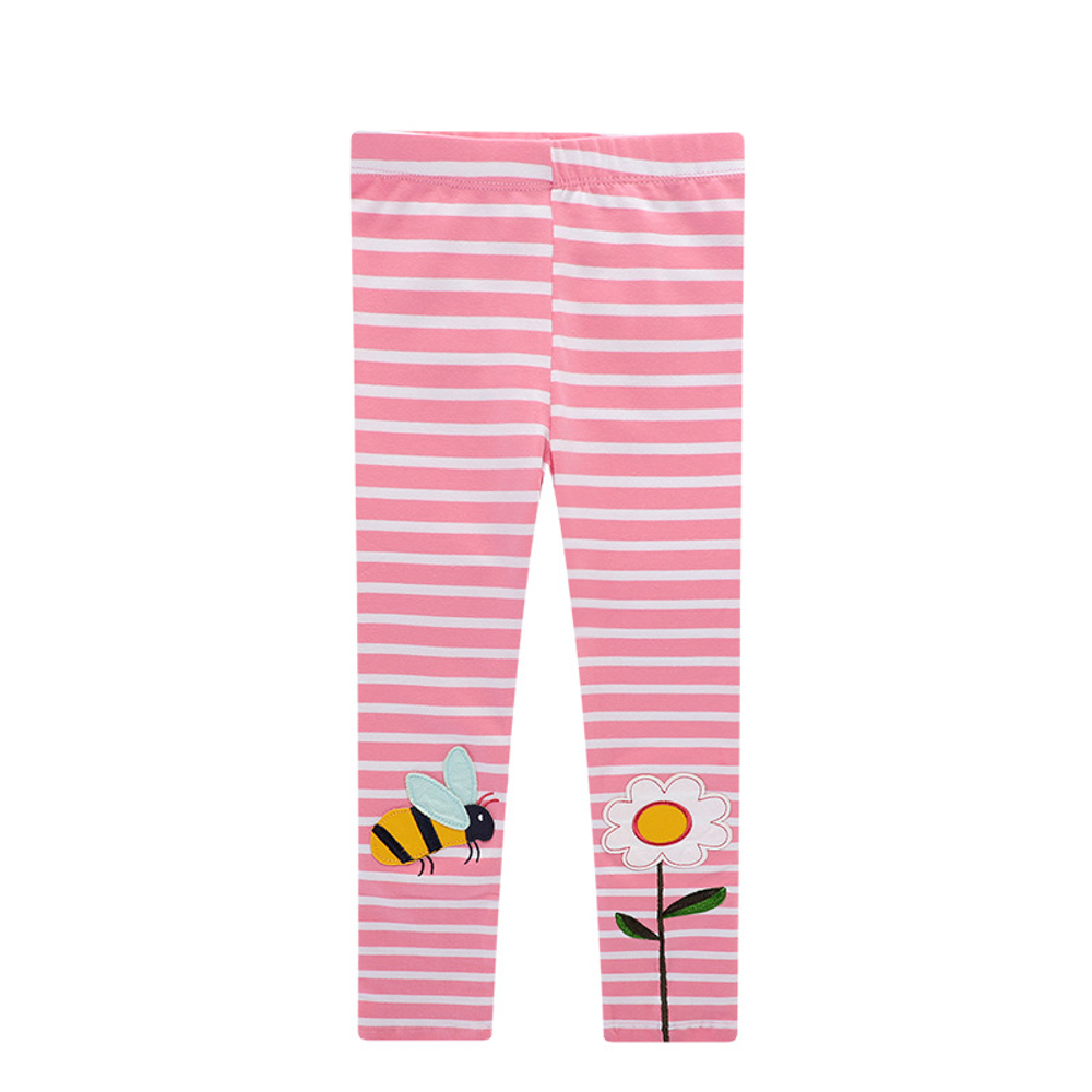 【BT060】韓版刺繡條紋蜜蜂花彈力長褲(1色)
