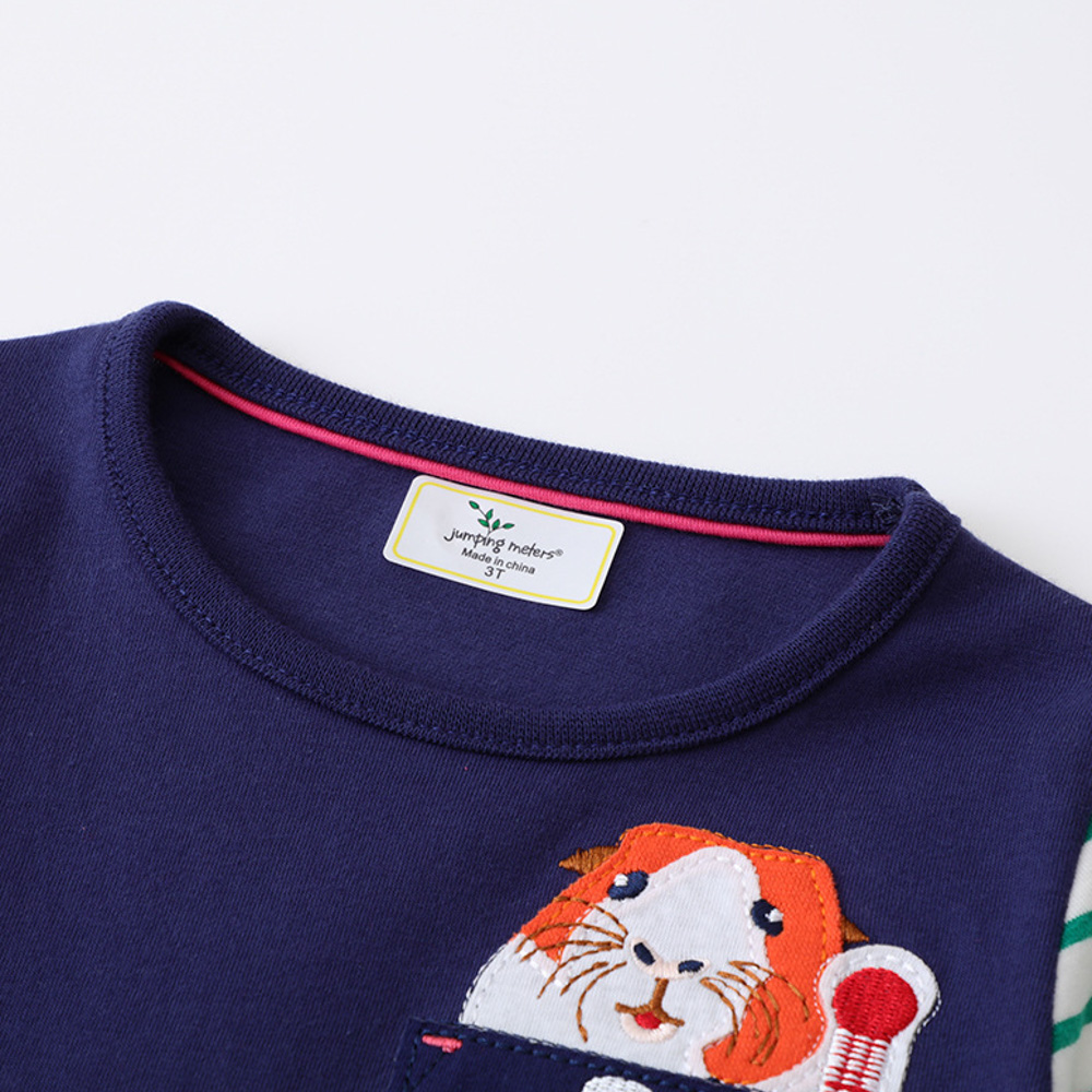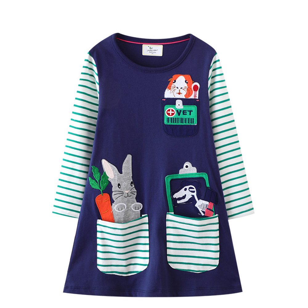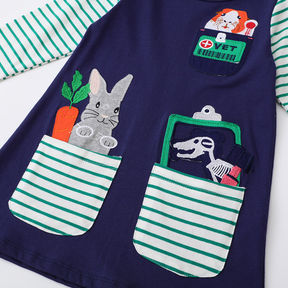 【BG575】歐美刺繡小獸醫雙口袋長袖洋裝(1色)