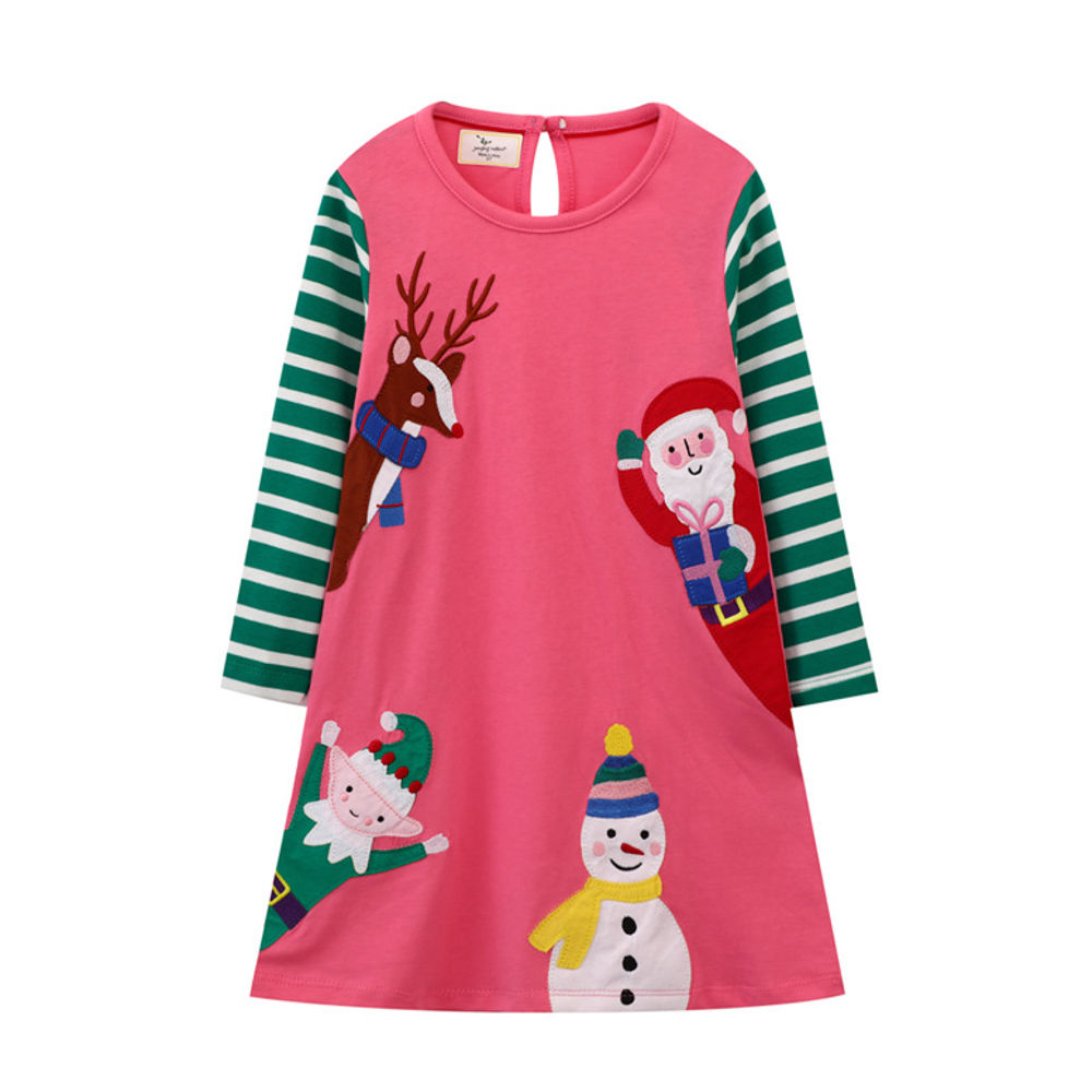 【BG576】歐美刺繡聖誕老人雪人長袖洋裝(1色)