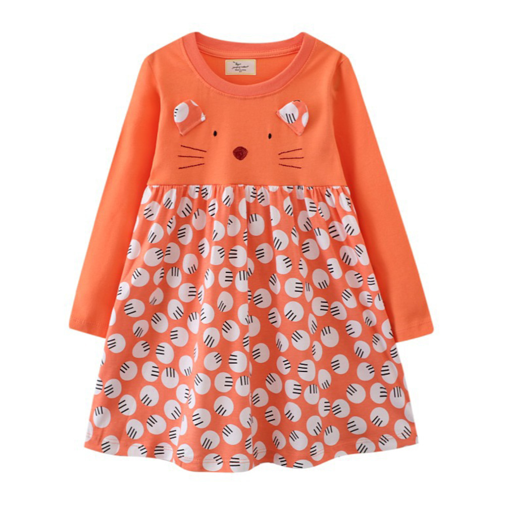 【BG593】歐美刺繡熊立體耳長袖洋裝(1色)