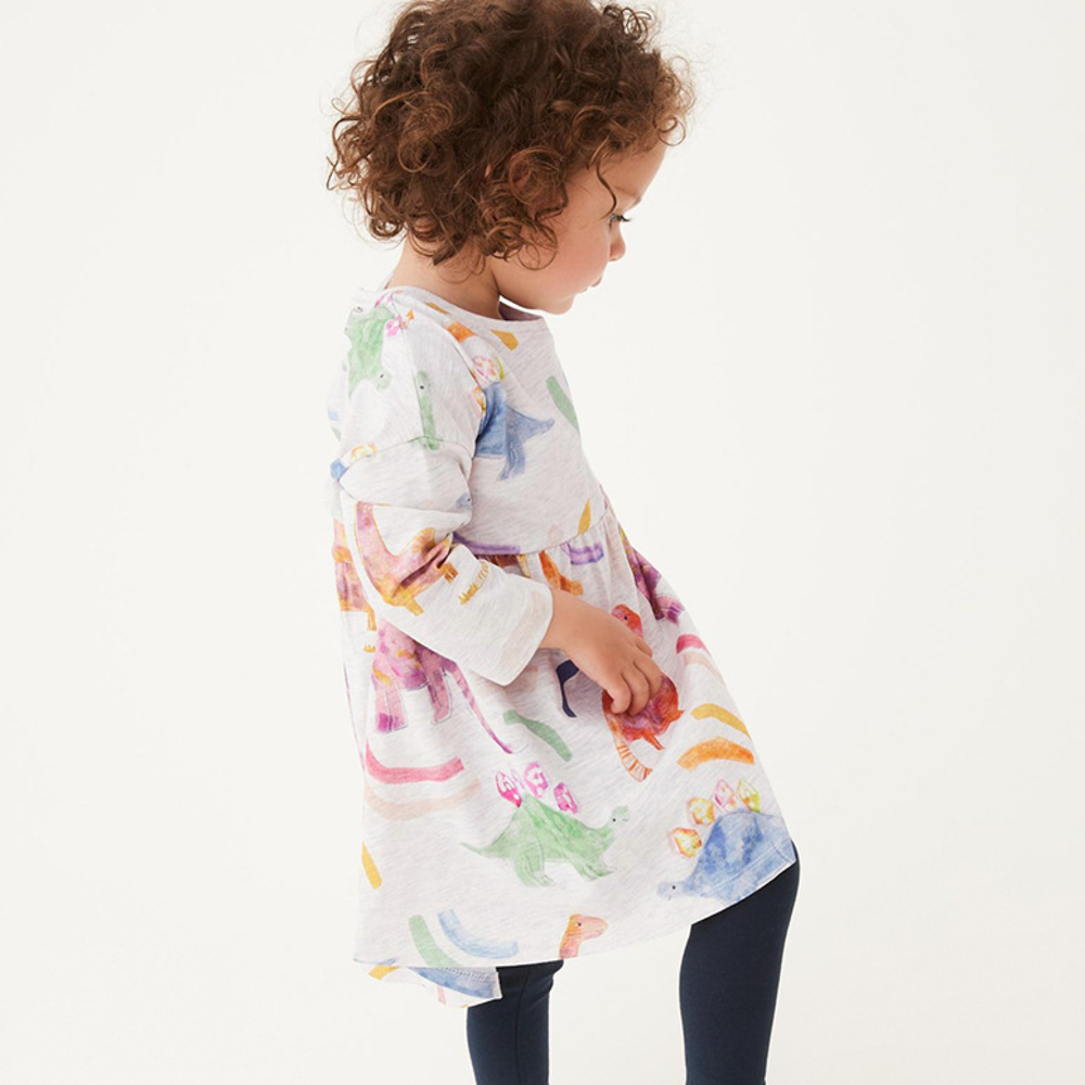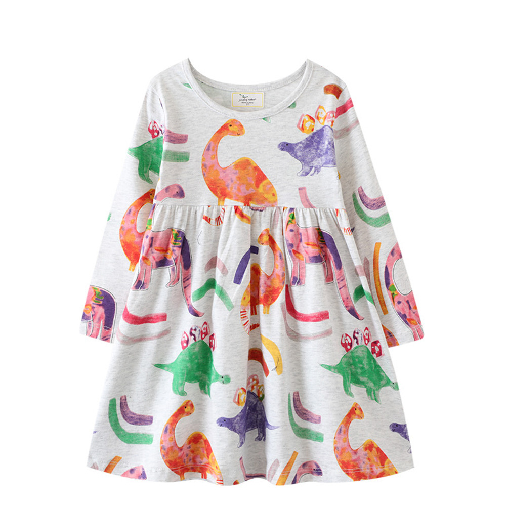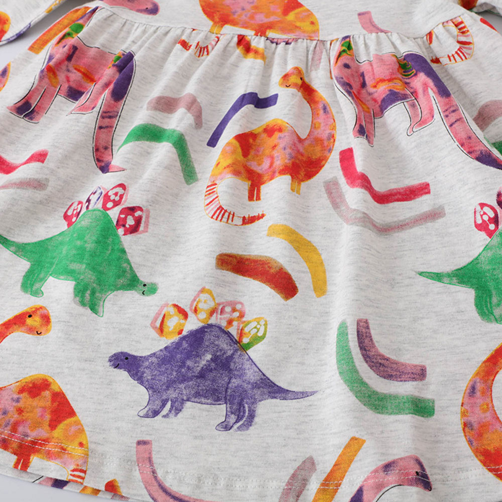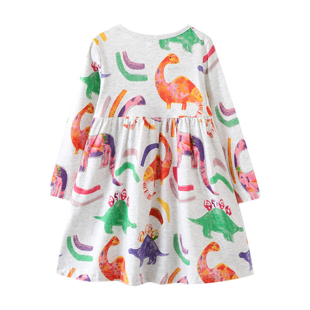 【BG594】歐美水彩塗鴉恐龍長袖洋裝(1色)