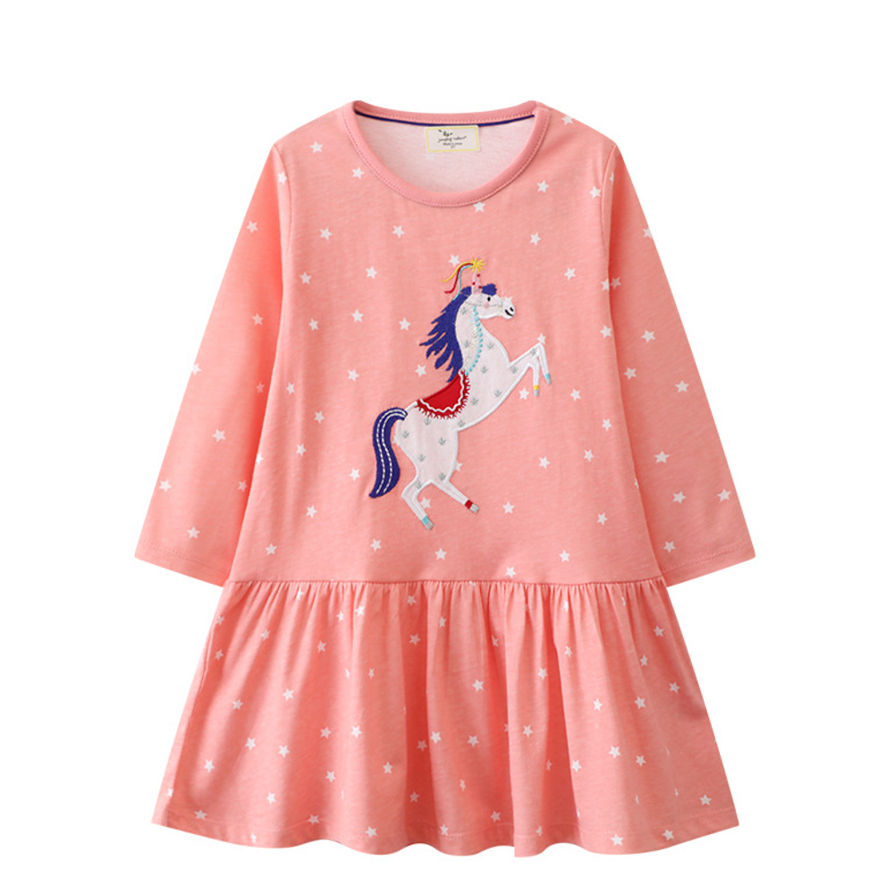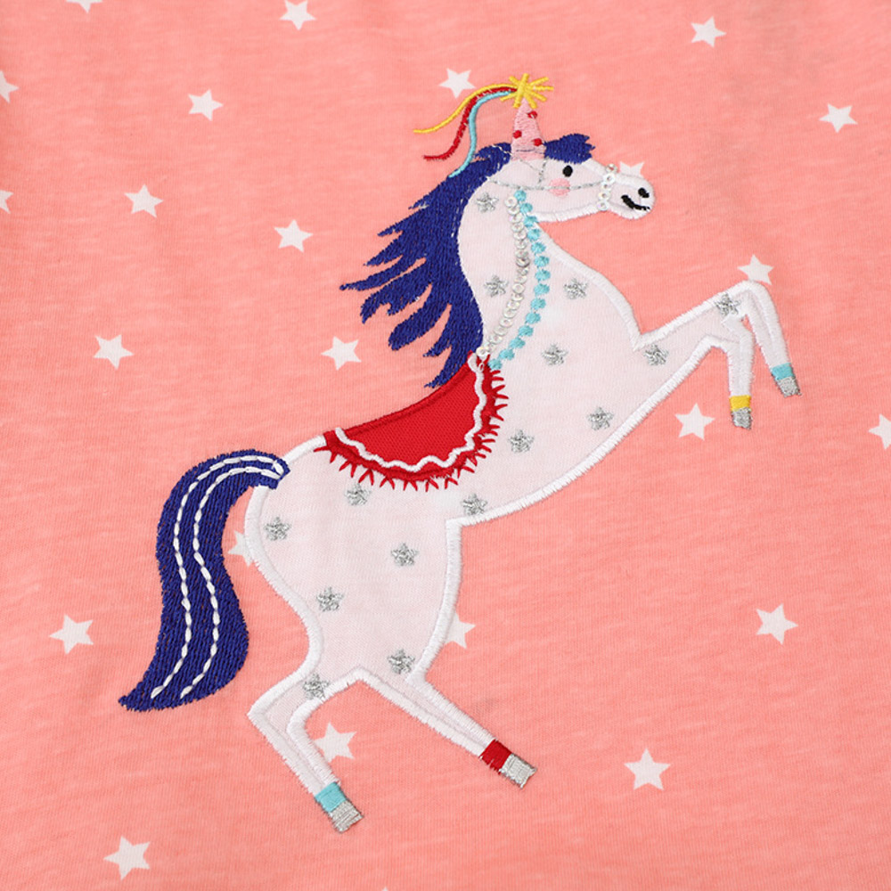 【BG596】歐美刺繡星星獨角獸長袖洋裝(1色)