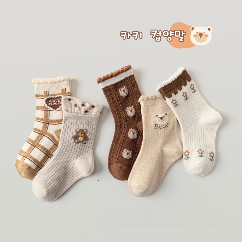 【SB059】童襪|韓版小熊愛心花中筒襪(5雙1組)